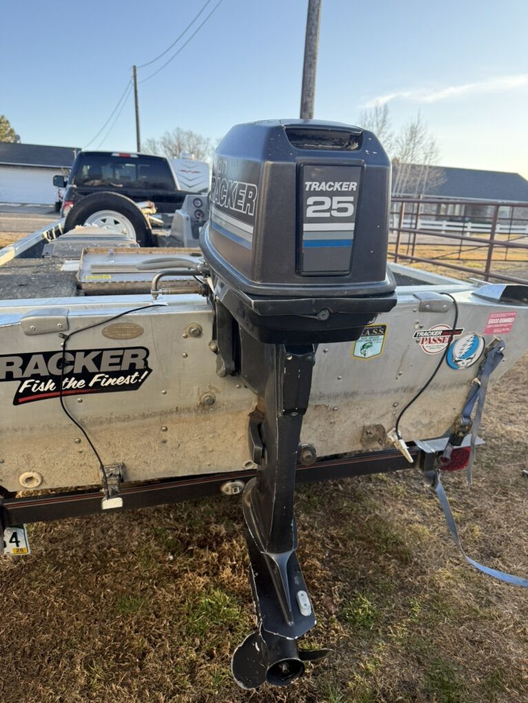 Johnson tracker 25 hp 2 stroke with throttle control and console for steering. Was pulled off of the boat I got and would love to see it go to use. It ran when I looked at the boat but is jetted for 7-10k ft.