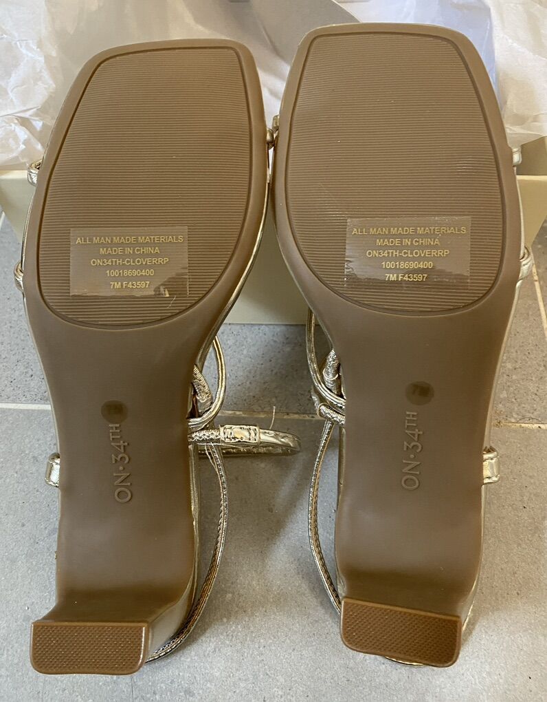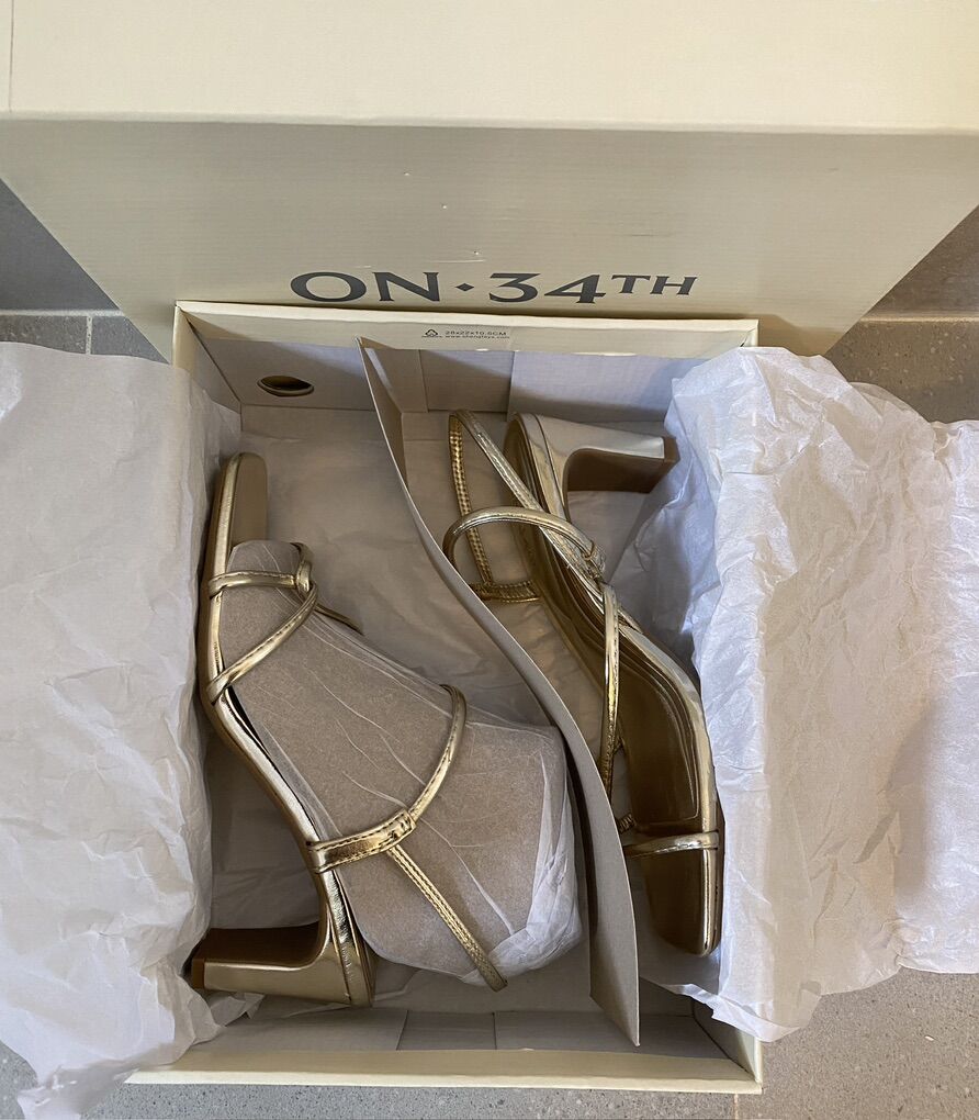 On 34th - Gold Sandal sandal shoe with comfortable 2 1/2” sculpted block heel.