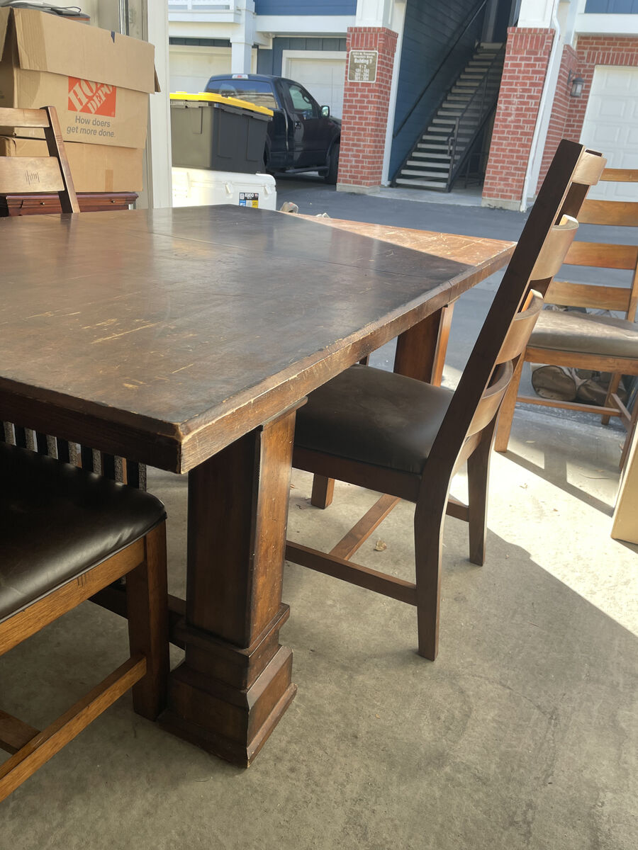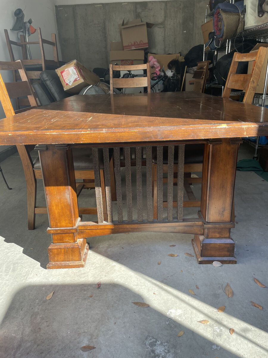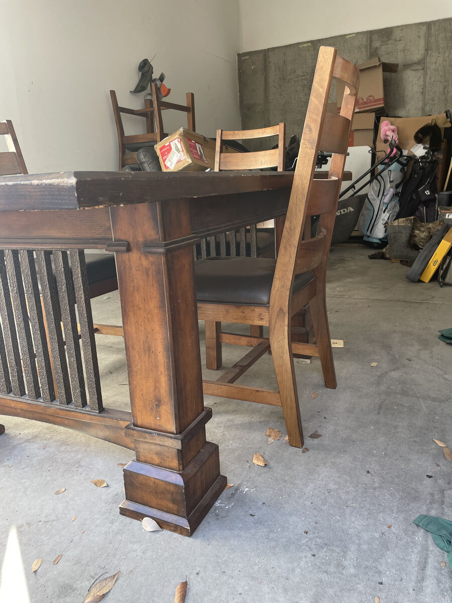 VenmoSelling a solid wood vintage dining set that is exceptionally sturdy and well-made. This is a heavy, real wood set with a thick tabletop and solid legs, perfect for someone who values durability and classic style. The table is 6 feet long in its standard setup (comfortably seating 4). When you need extra space, the two 18-inch leaves allow the table to expand to a full 9 feet long, allowing you to fit all 6 included chairs comfortably. Specifications: Standard Size: 72 L x 44 W (Seats 4) Extended Size: 108 L / 9 Feet (Seats 6 comfortably) Material: 100% Solid Wood (very heavy and stable) Includes: Dining table, 2 extension leaves, and 6 matching chairs. Condition: Great vintage condition. Minor wear consistent with age, but structurally perfect. This set is ideal for someone who wants a manageable table for daily use but needs the option to expand for hosting. Asking: $699