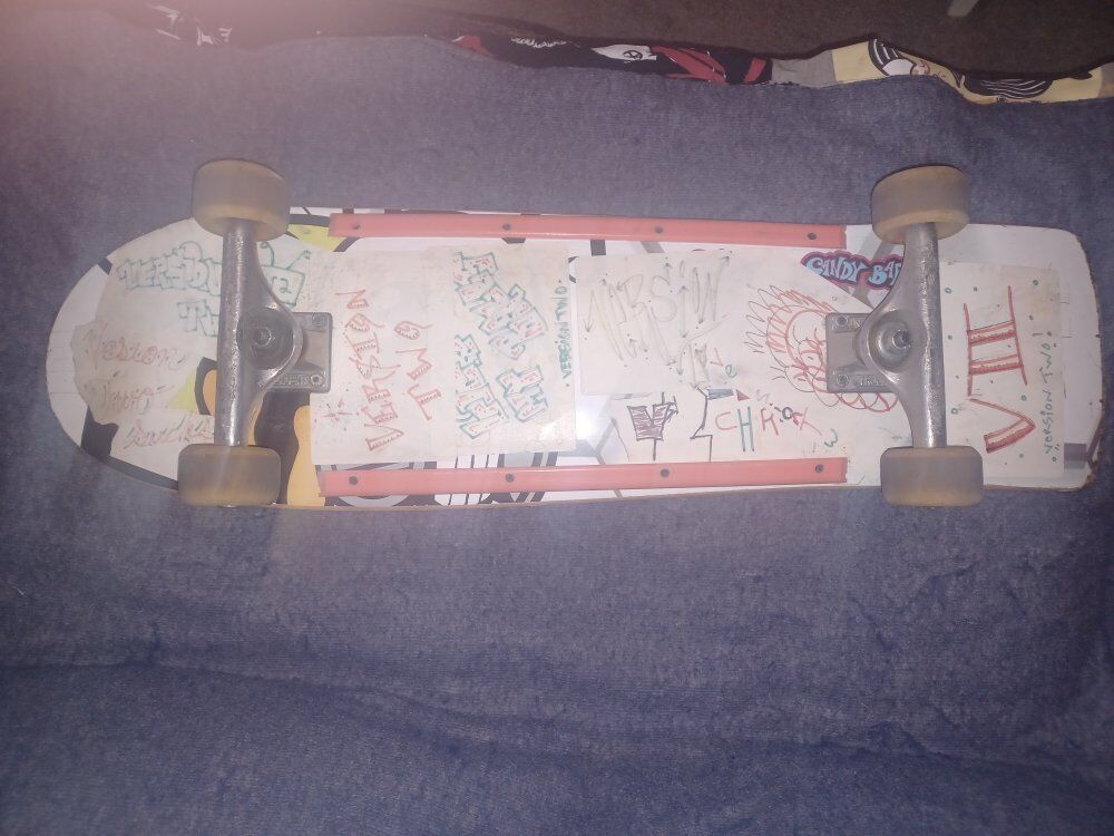 VenmoHi! Thinning out my life. I used this board on my old band's tour to get around, hence all the stickers. Independent trucks, Brand new rails, and clear grip! Super fun to ride. Text is best, and first $40 bucks takes her home! Thanks!