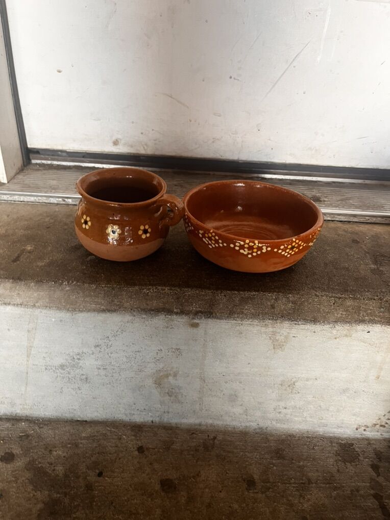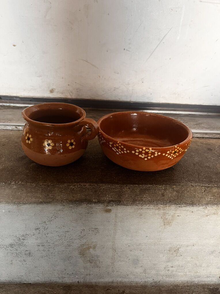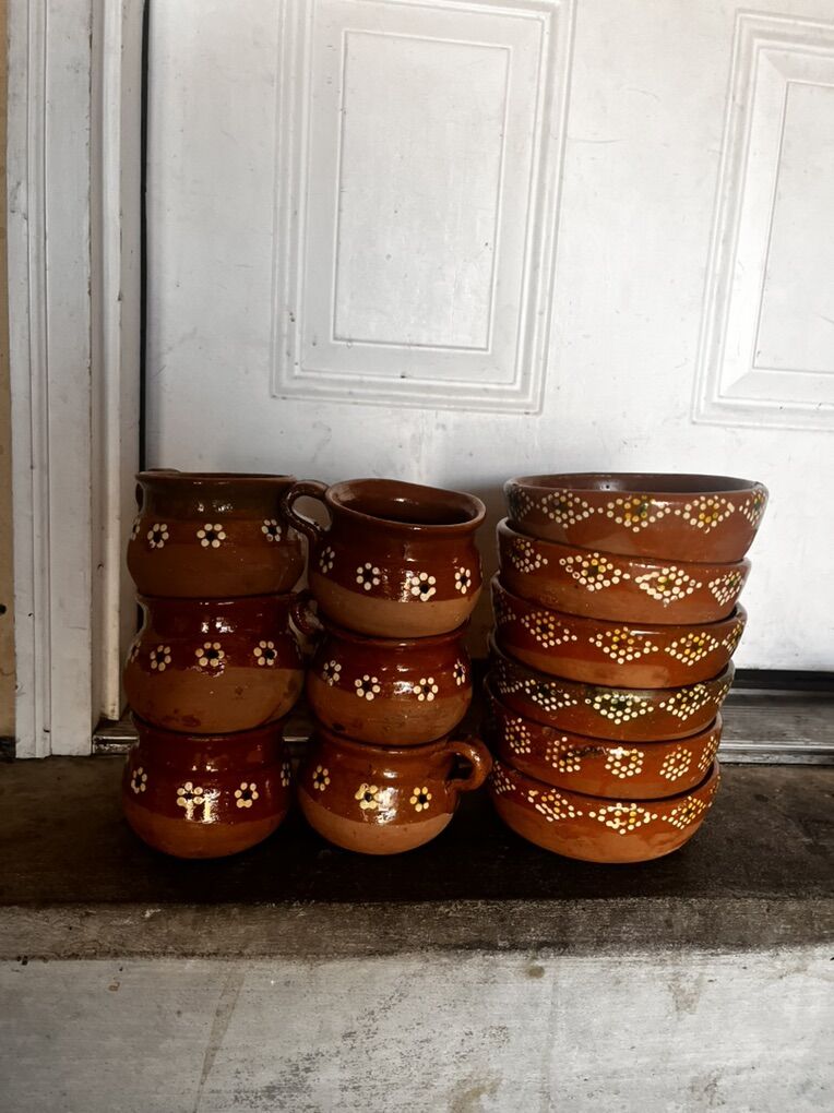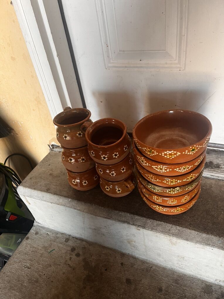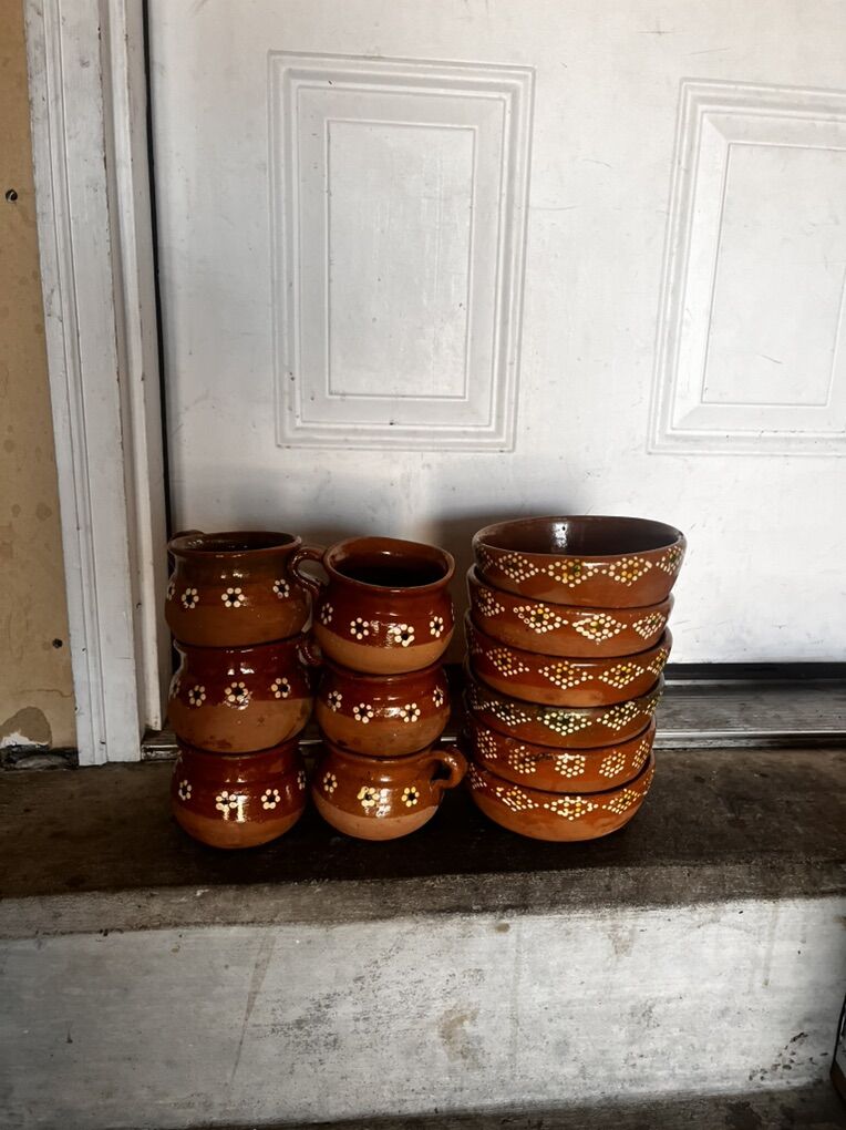 Hand-Painted Mexican Red Clay Pottery - Traditional Floral Dot Pattern - 12 pc Set