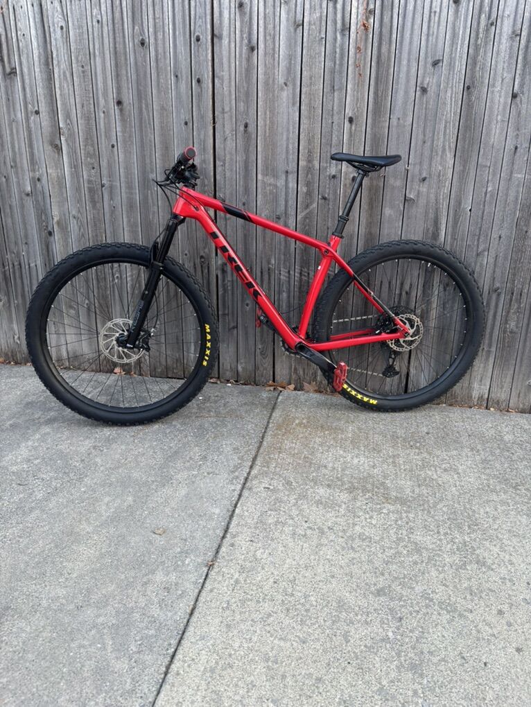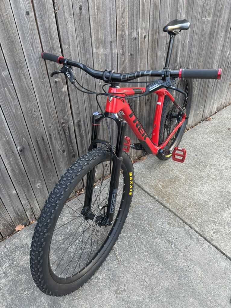 Venmo2018 Trek Procaliber 9.6 build Light and fast race bike 26lbs Large 19.5inch Carbon frame in good condition normal wear and one minor ding. See comments below parts list New Rockshox Reba 12 0mm travel New GX cranks New GX 32T chainring New GX chain New XO1 12speed shifter New SRAM Guide 4piston brakes and centerline rotors New SRAM dub PF92 bottom bracket New Raceface stem SRAM GX derailleur in great condition Maxxis Ardent setup tubeless 29x2.4 on Synchros wheels in great condition Fox dropper in great condition Deity handlebar in great condition The original owner raced the bike in high school. Early in the bike’s life the rear seat stay took a hit. The stay was dinged, repaired, and ridden for a couple more seasons without issue. I’m confident in bike, so much so, I’ll buy it back if you ever have a problem.