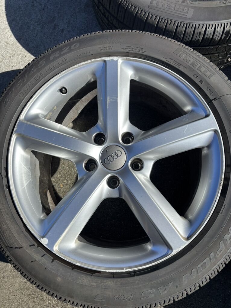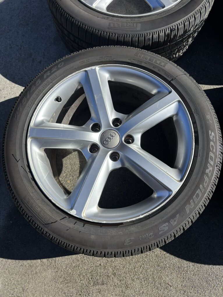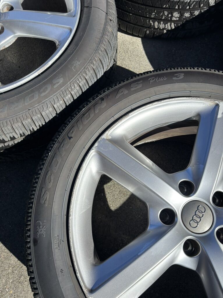PayPalNice set of wheels for a Gen 1 (4L) Audi Q7. Would also work with similar VW Toureg and Porsche Cayenne. Good shape with normal rash and wear from the years. The wheels are smooth and ride great with no issues. Tires are in excellent shape. Only 5-7k miles on them with close to fill tread left. Tires are Pirelli Scorpion AS Plus 3, and themselves are worth at least $500 as is.
