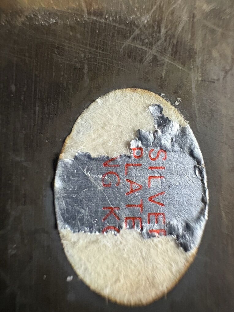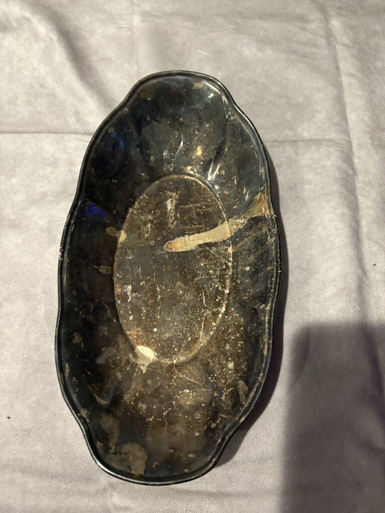 Condition: • Silver-plated • Ornate edges • F.B. Rogers bowl with maker label • Both pieces show noticeable tarnish, patina, and surface wear • No cracks or major dents