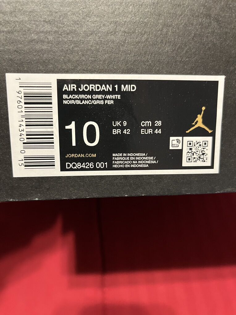 Air Jordan 1 Mid Black/Iron Grey-White Size 10 Immaculate condition. Worn a few times Selling due to being too small Asking $90 OBO CASH ONLY asking price is 30% off retail