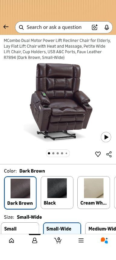 Electric lift chair for sale. Hardly used, it was bought for a month long visit with my mother in law. Purchased on Amazon for $809.00 selling for $500. Faux leather, heat and massage. Cupholders in the front. Cash only.