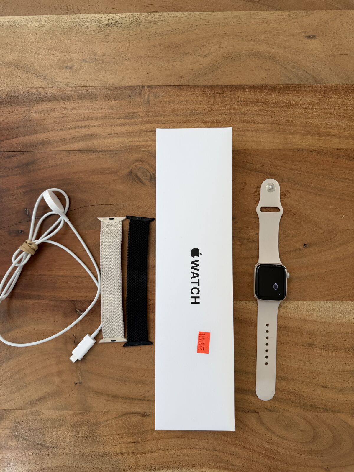 VenmoFor sale is an Apple Watch SE. The watch is in perfect condition. I have always had a screen protector on it and so there are no scratches. Watch is in great working condition with no issues. I just switched to a Garmin watch. Comes with the original box as well as an unused original watch band. I also have two addition bands that are also included. I am in Eagle Moutain, just north of the Ranches Golf Course. Let me know if you want to come by!