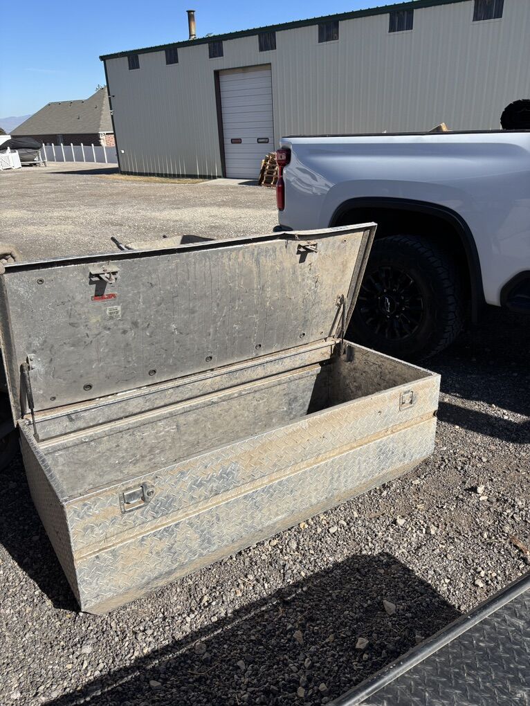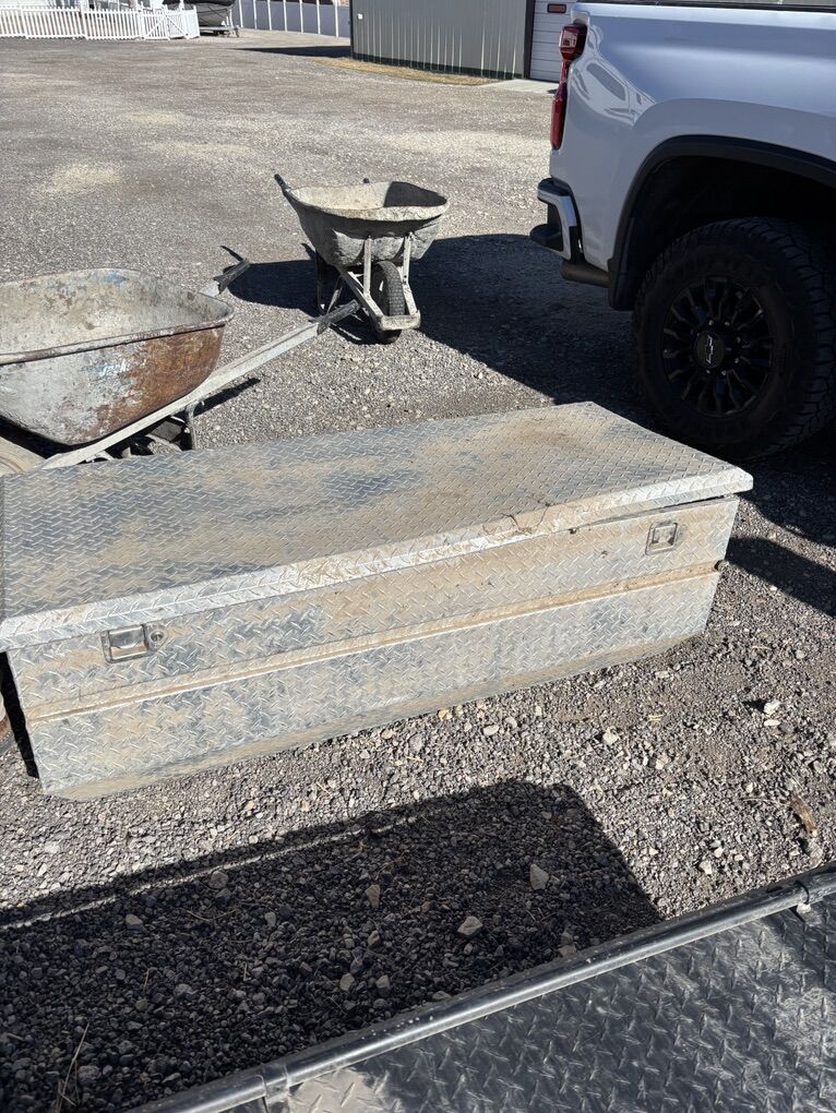 Selling a heavy-duty diamond plate aluminum tool box. This is a solid, secure chest-style box perfect for a truck bed, trailer, or job site storage. It’s made from thick-gauge aluminum, so it’s built to last. Has some wear and dents and has no keys. Need it gone so selling it cheap.