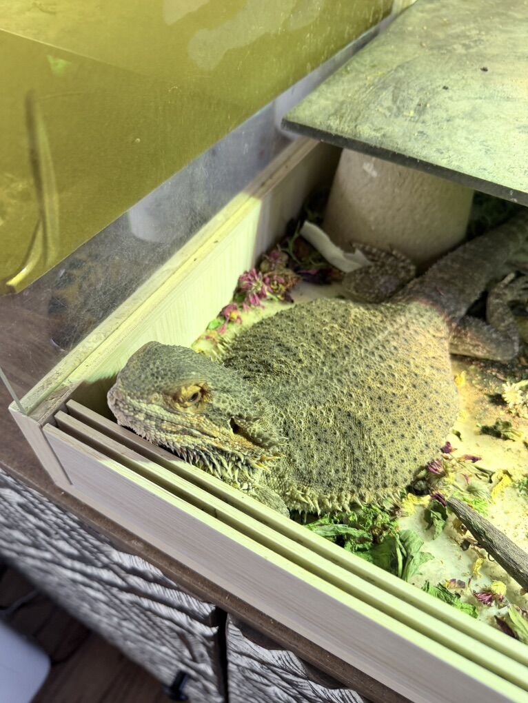 VenmoThis is Coach Beard. He goes by Beard. He is a 2 1/2 year-old bearded dragon very chill! comes with the cage and everything in it along with calcium and lightbulbs. He is in good health. The price is mainly for the cage. I’d love to see him go to a kid that would love him.