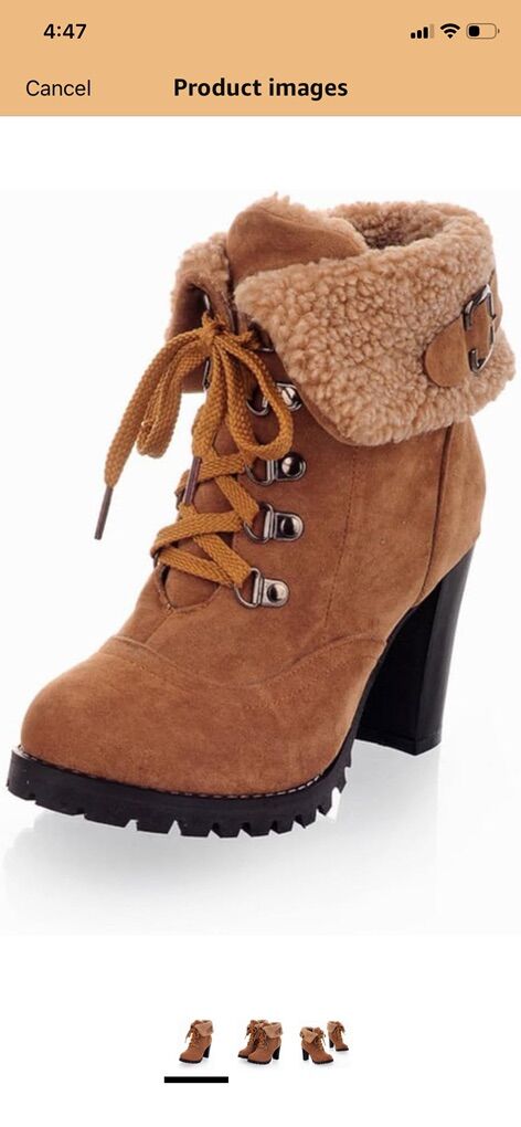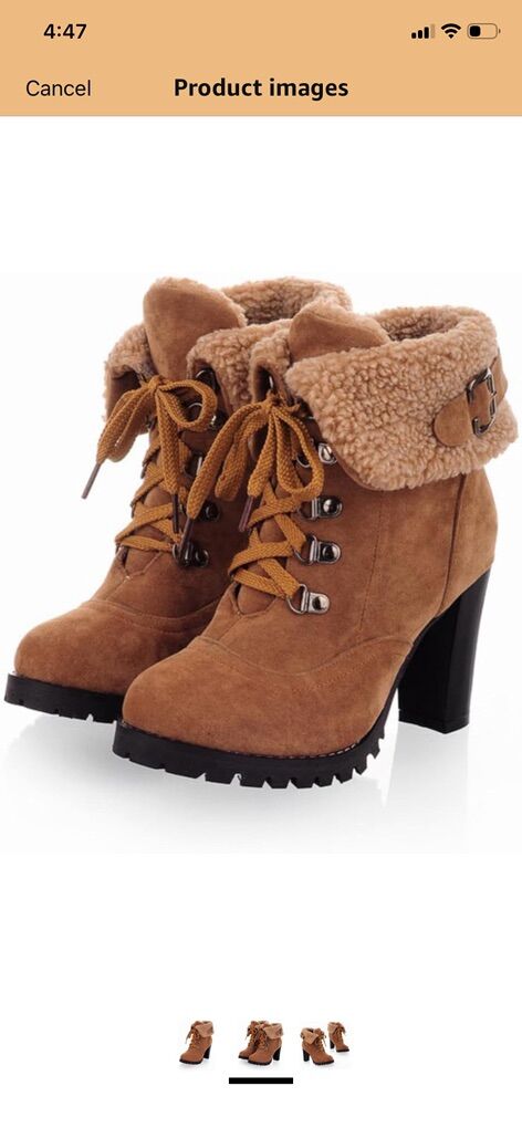 Women’s fleece lined ánclele boots chunky high block heels lace up pumps with buckle strap suede , round toe winter casual party shoes I only used it once for a couple of hours I’ve had difficulty with my swollen feet and I couldn’t wear many shoes that I never get to wear …. Any question let me know thank you!!!….