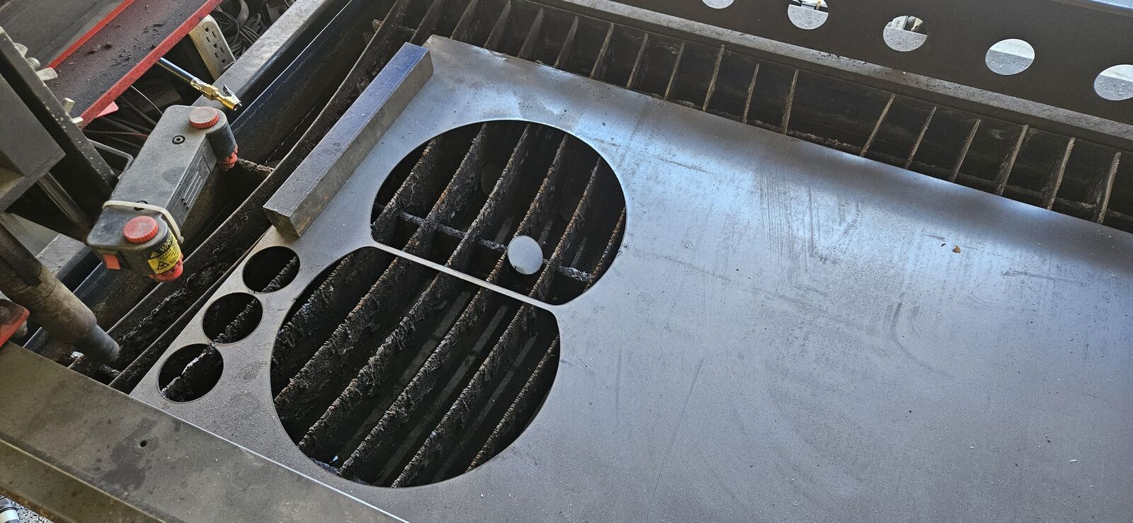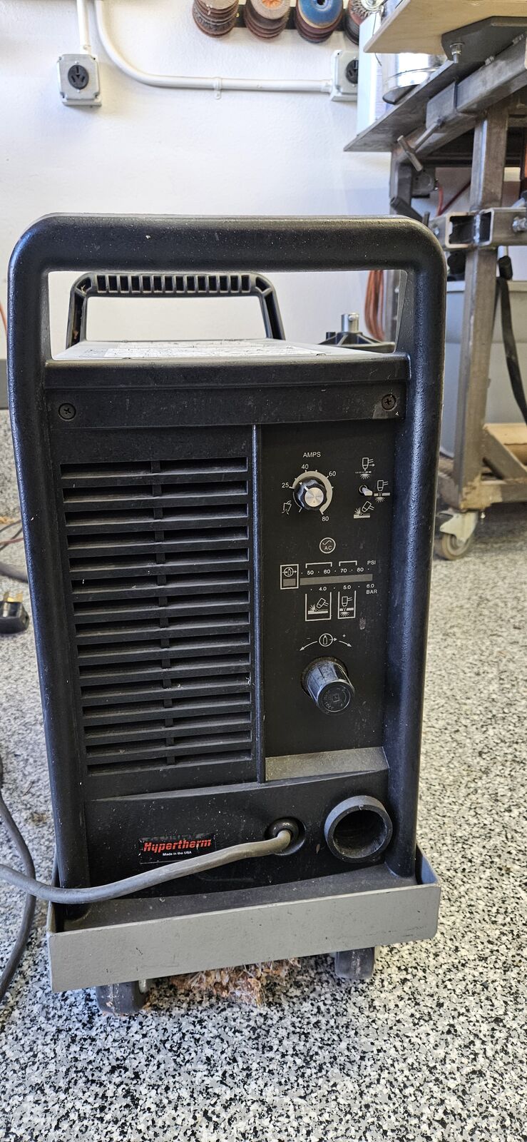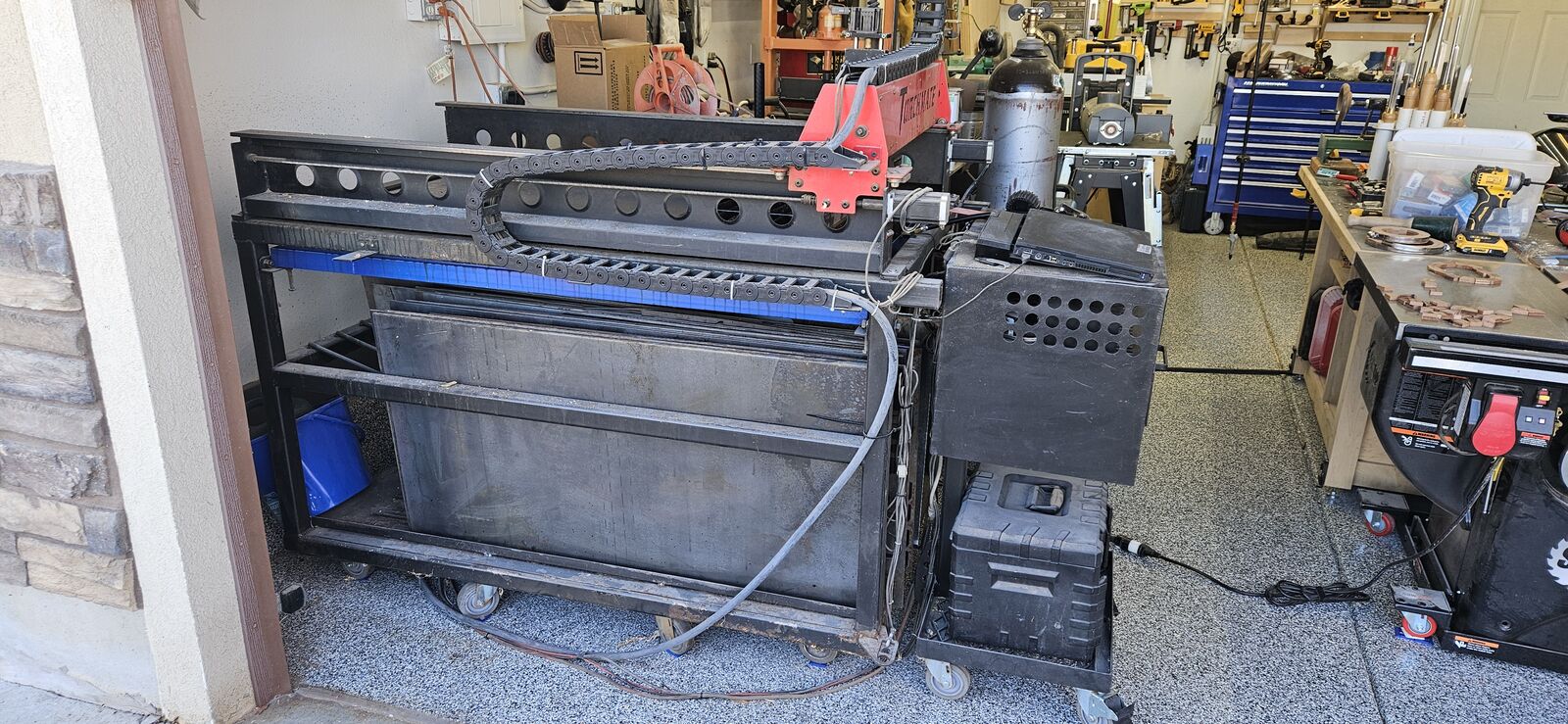 Torchmate 2x4 with torch height controller Hypertherm powermax 1250 with Machine torch and hand-held torch Motorguard moisture filter for the plasma cutter Comes with hundreds of dollars of Hypertherm consumables Comes with hundreds of dollars of 2x4 sheets of steel from 16 gauge up to 1/4" thick Mobile cabinet that stores electronics and consumables Old laptop to run the software Custom table that holds ready-to-cut steel underneath, and has a new waterpan (helps contain sparks/smoke)