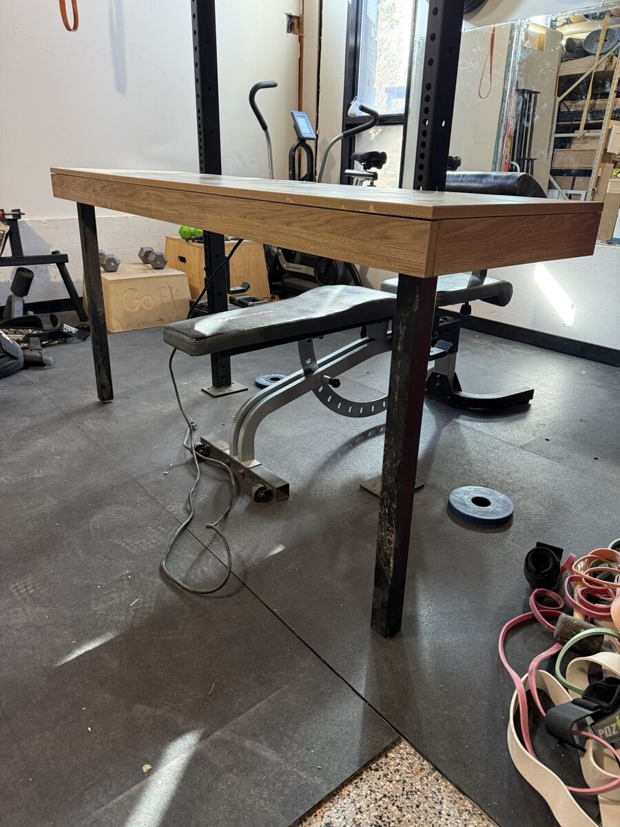 This was leftover from a hotel remodel so it's commercial quality. Looks like white oak but it's got the durability of a melamine. Also have some other more traditional looking desks that match so I'd give you a great deal on all of them if you want them all.