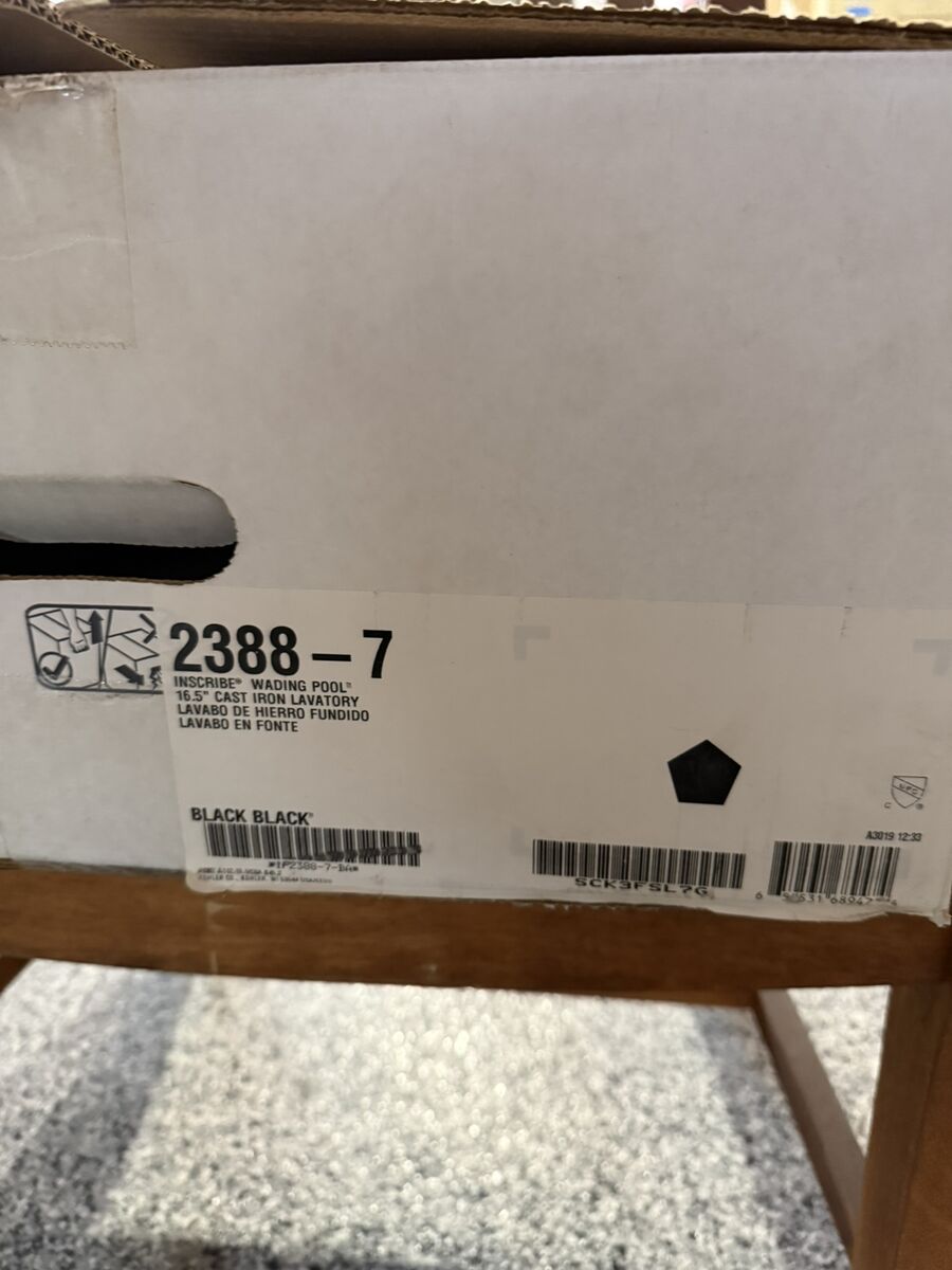 This is a brand new in the box black on black Kohler sink. It's perfect for something DIY because it's easy to drill out the hole for the drain on your own into your countertop. I bought it intending to use on my remodel but ended up going with something different. Original price was $240 before tax. Here's the website if you want to look up details on it.