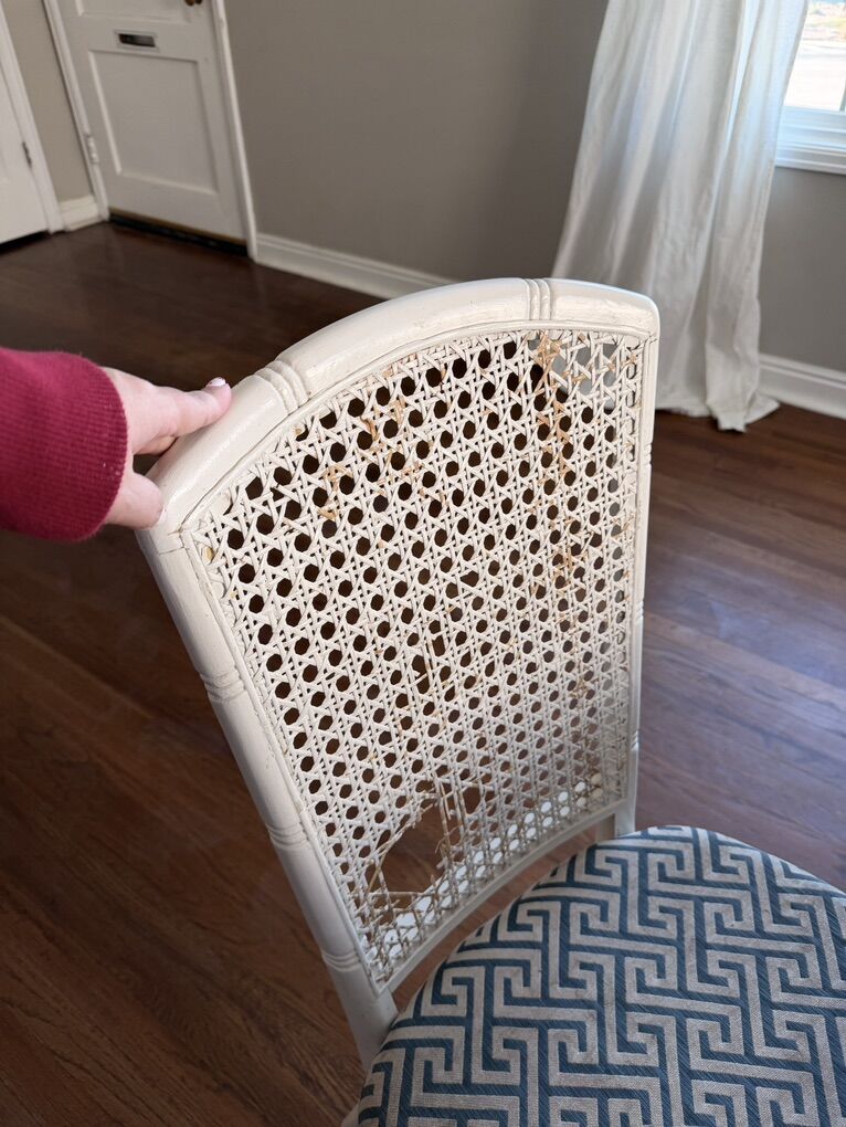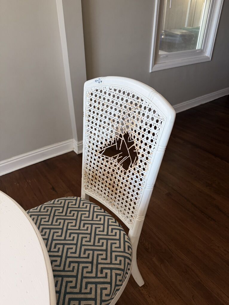 VenmoGreat kitchen table with 4 chairs. We have loved this table we inherited. Sad to see it go, but we need to get something that can fit more people. Very well made. Needs new wicker on the backs of the chairs and maybe a new paint job.