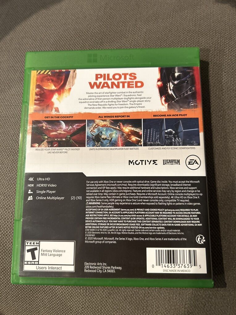 VenmoStar Wars Squadrons game disc for Xbox one and Xbox series X.