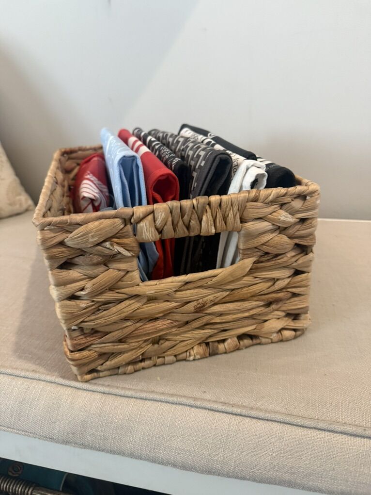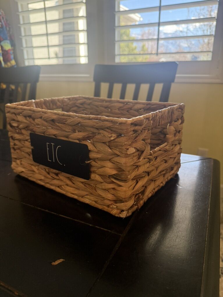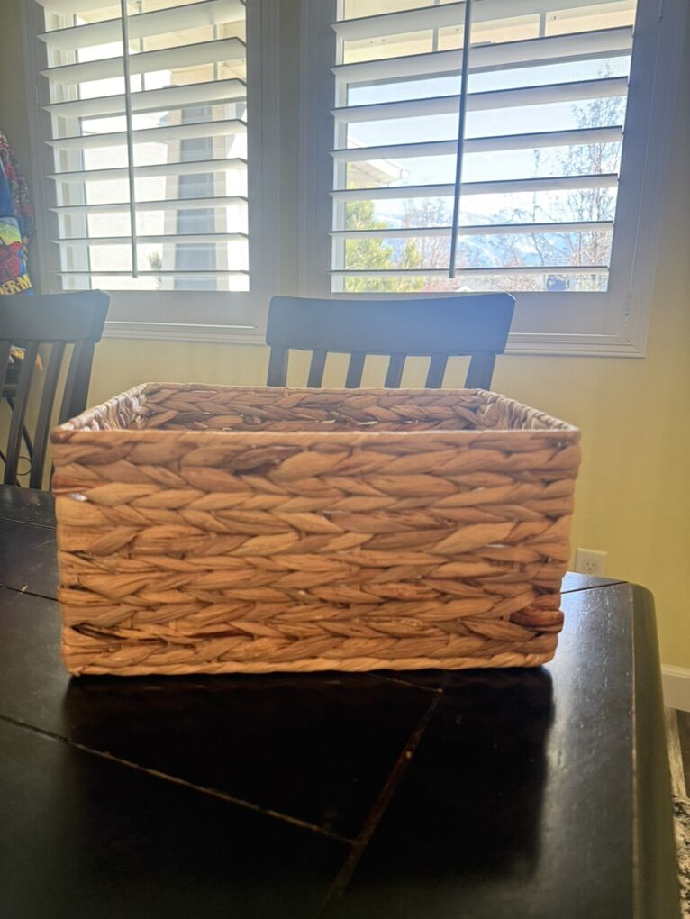 VenmoSet of 4 matching wicker baskets, great for organizing shelves, closets, toys, whatever. Natural woven material, nice neutral color. Fit perfectly in cube storage units. Good condition, clean and ready to go!