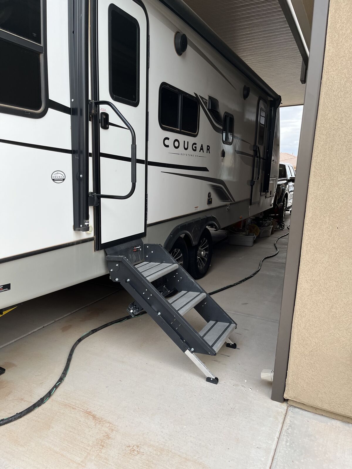 200 amp solar/ smart lights,awning, jacks & lithium batterys/ towing & accessories inc./ dual entry/ inverter & converte/ 12 CF fridge, freezer, microwave & gas oven/ 10 Ft slideout w/ 2 leather message reclining chairs/ remote air master Rm/ blackwater 30 Gal, grey wtr 60 gls, Fresh wtr 54 gals/ 2 propane tanks/ tankless wtr heater, glass shower door. MSRP is $51, 555