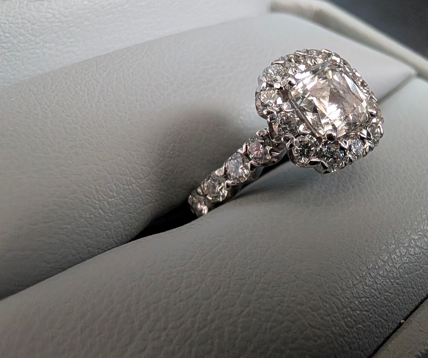 I'm selling a stunning, high-quality diamond engagement ring originally purchased from Shane Co. This ring is a classic showstopper with significant sparkle and a substantial total gem weight.