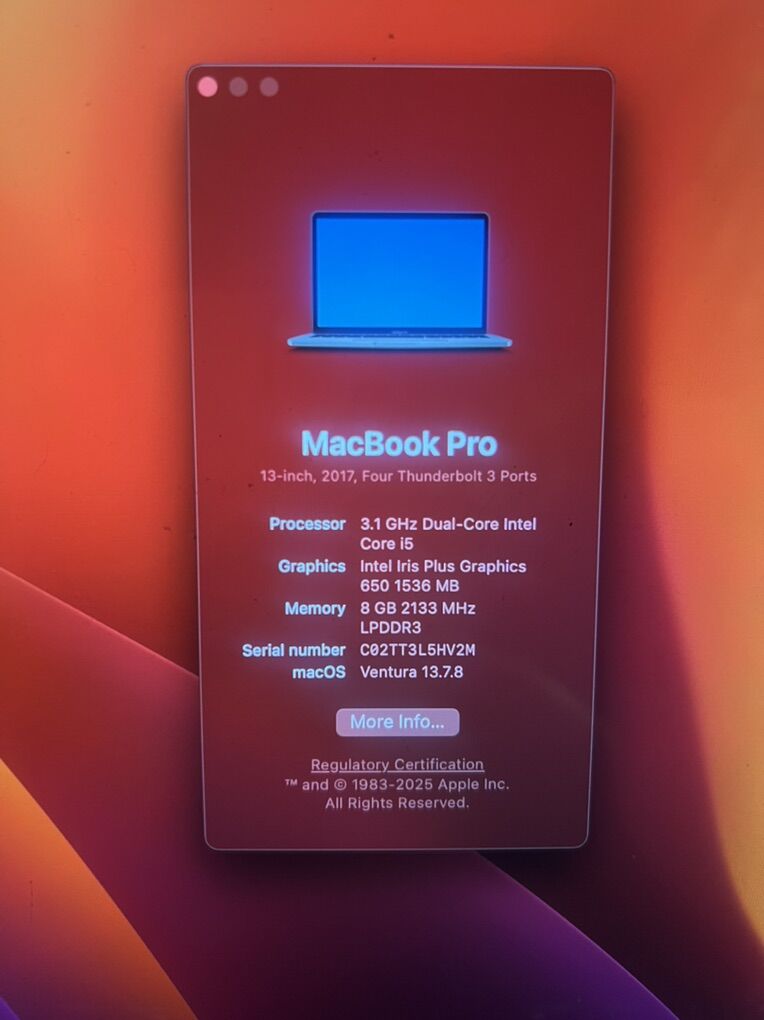 Macbook Pro 13in 2017 For sell. Works good and is Factory reset. $200 OBO . Touch Bar does not work due a bent casing near the keyboard on the right side but does not cause issues opening or closing the laptop. Open to trades of similar value. Mainly looking for other Similar Apple Computers , DJi Drones , Canon Cameras, iPod classics or other electronics. No phones.