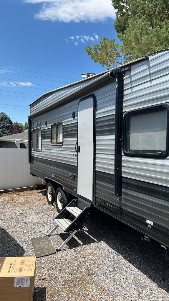 Toy hauler for sale - half ton towable. I currently tow it with a 16 Sierra 1500. Great condition no leaks. Separate Queen front bed up front with an expensive memory foam topper. Heat and ac work great. Sleeps 5 adults with space for more. 32” tv with digital antenna. Purchased from Parris RV 2 years ago and we’ve only had time to use it once. Newer tires only one trip since purchased. Electric stabilizer jacks and electric tongue jack. Does have a damaged cabinet from the previous owner but it does not affect the function. Let me know if you have any questions. Text is best.