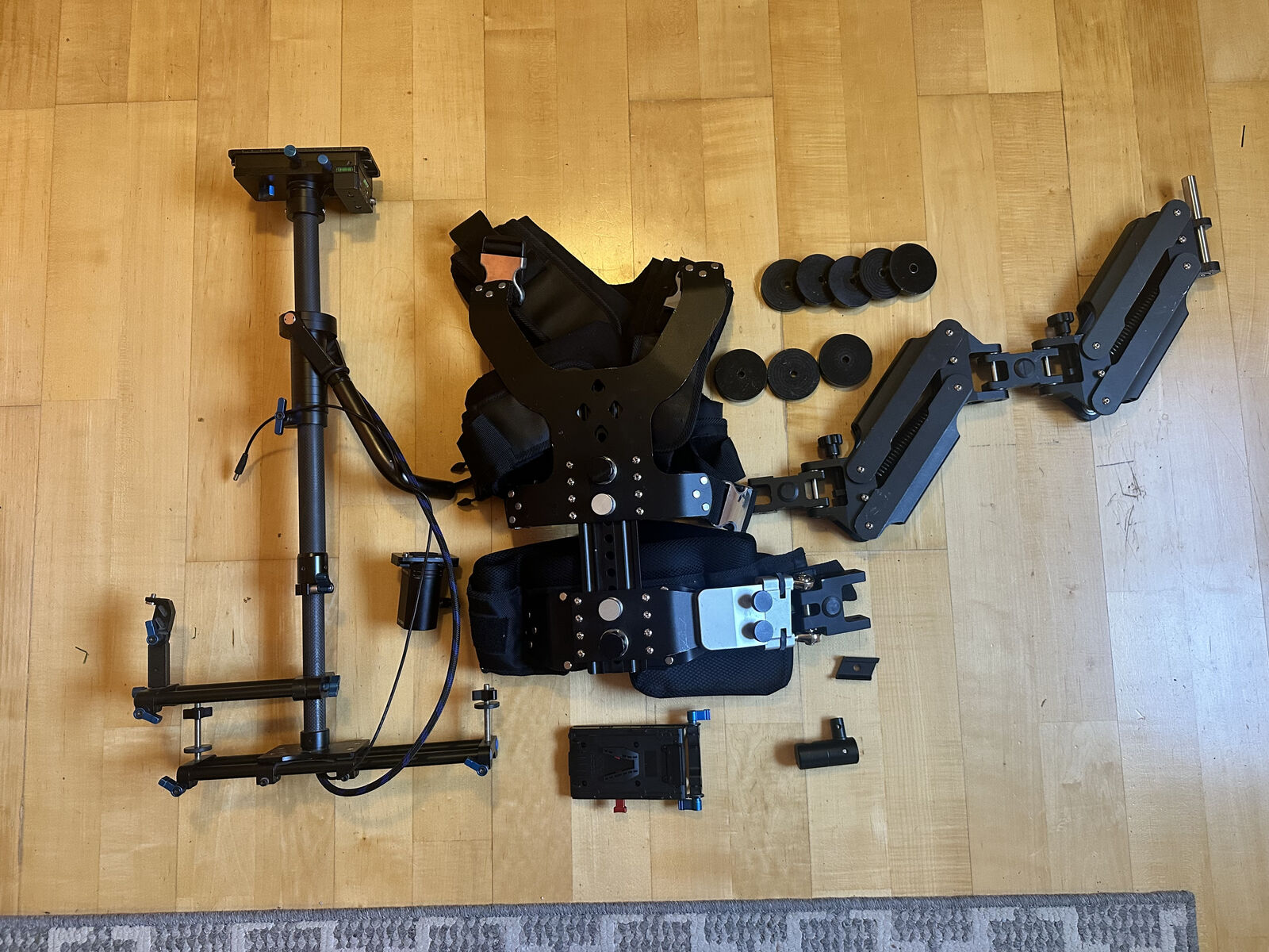 •Sony EX 1 Camcorder. Case 2 batteries and a charger. It is a 1080p HD camera. But it is a solid camera. Comes with recording media. Camera has built in ND filters. • Came TV Steadicam system • Letus Extreme Vintage Lens adapter for Nikon, Cannon FD, Cannon EF mounts. This includes a film grain simulator glass and battery powered motor. • Fotga Follow Focus System. Almost new condition and in original box. •Small Rig Light weight Matte Box. Comes with 4 adapter rings. 3 of which have never been used. The matte box itself has been used maybe twice. • Lillyput 1080i/p monitor with HDMI input and various SDI in and out connections. • Wired Audio Technica Lav microphone with acoustic guitar mount. It's not the greatest microphone but it is well built and usable. • Davis and Sanford Fluid Head Tripod. This features th FM18 fluid head and works really well. Rated for 30lbs. So big cameras rest on this pretty well. Comes with wheels for studio work and a carrying bag. Plus a couple extra mounting plates. • Two umbrella style lights with soft boxes. I think the soft boxes are something like 16-18" squares. I have daylight bulbs to throw in. It also has two stands. •Two well used Mathews combo style light stands. To help add light where needed.