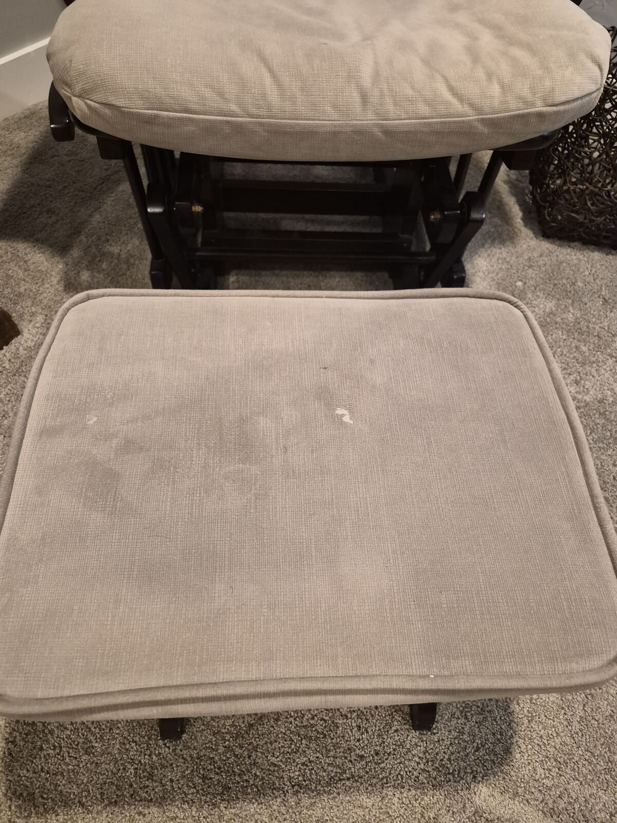 We bought this glider rocker for when we tended our grand baby, but didn't use it too much. Great condition. Has a little stain on foot stool, as shown in Pic. Asking $20