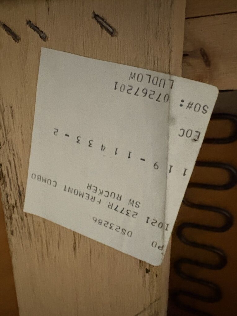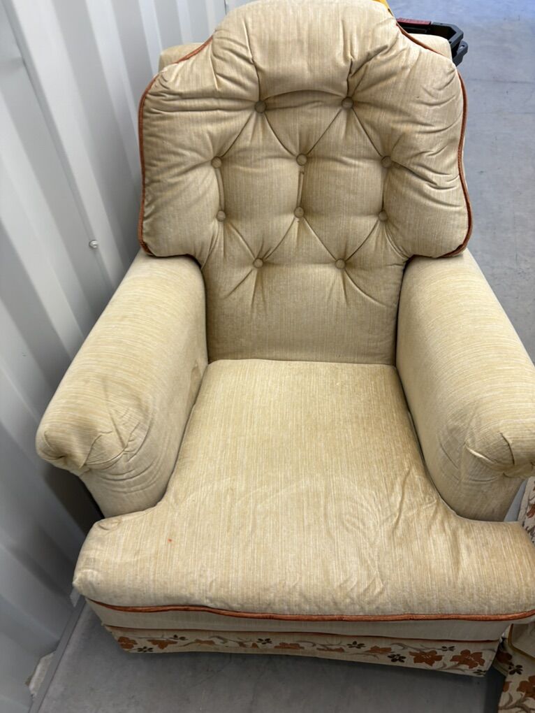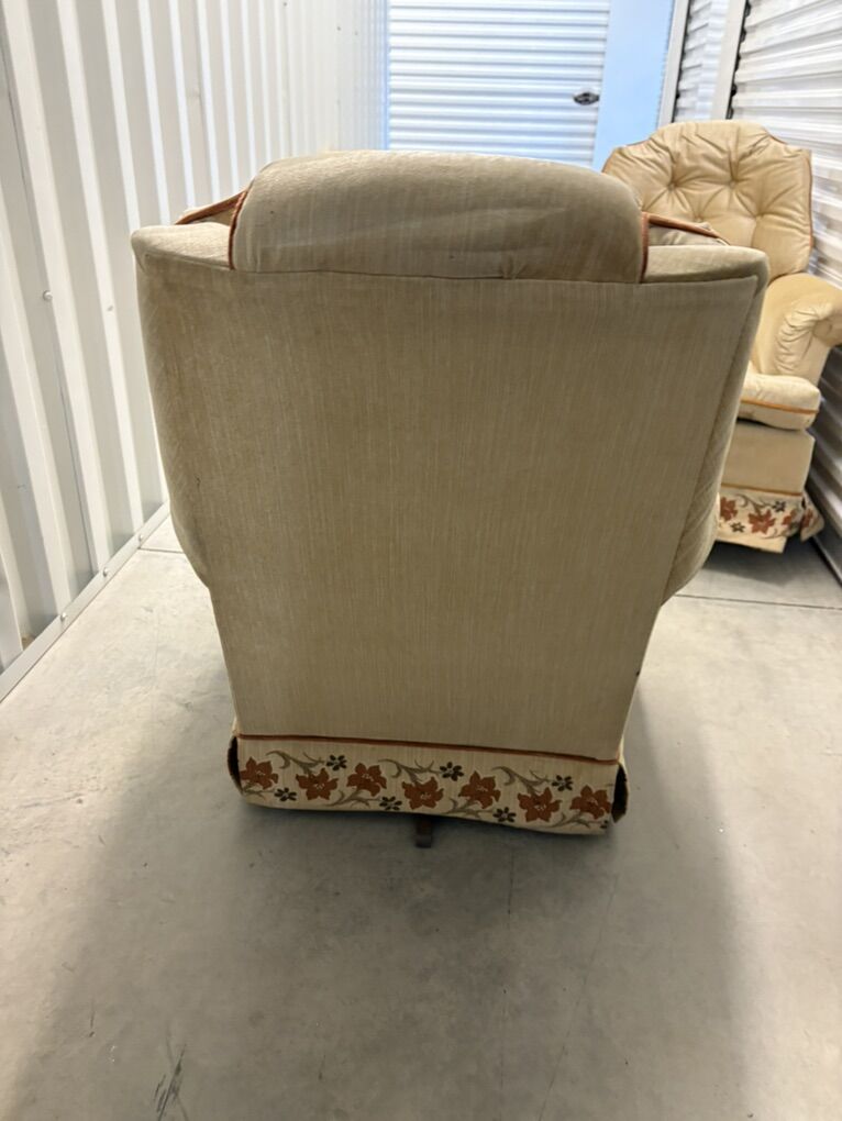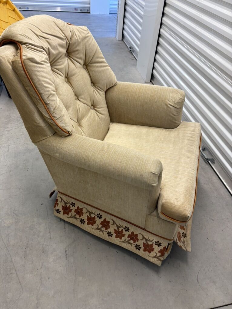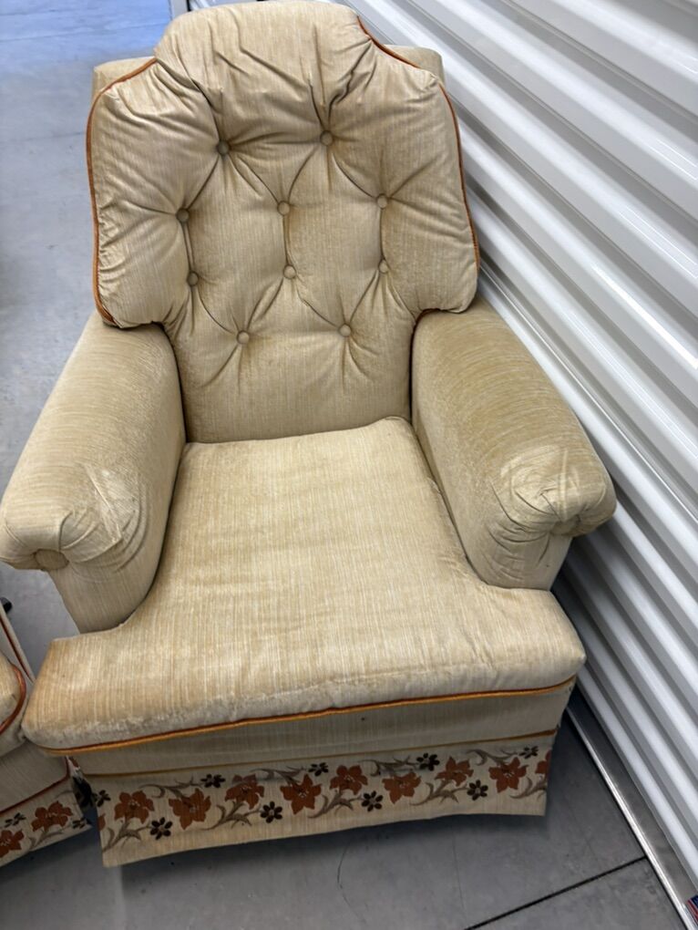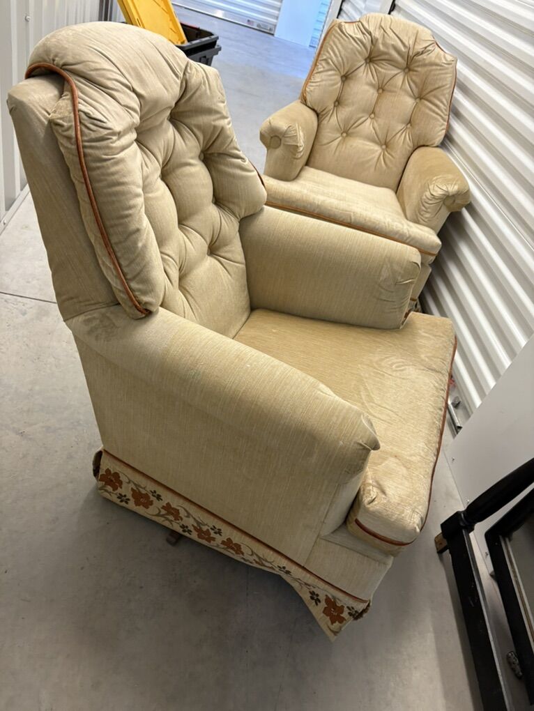 VenmoCozy vintage rocking armchairs with tufted backs, wide arms, and floral trim. Both rock smoothly and are structurally solid.