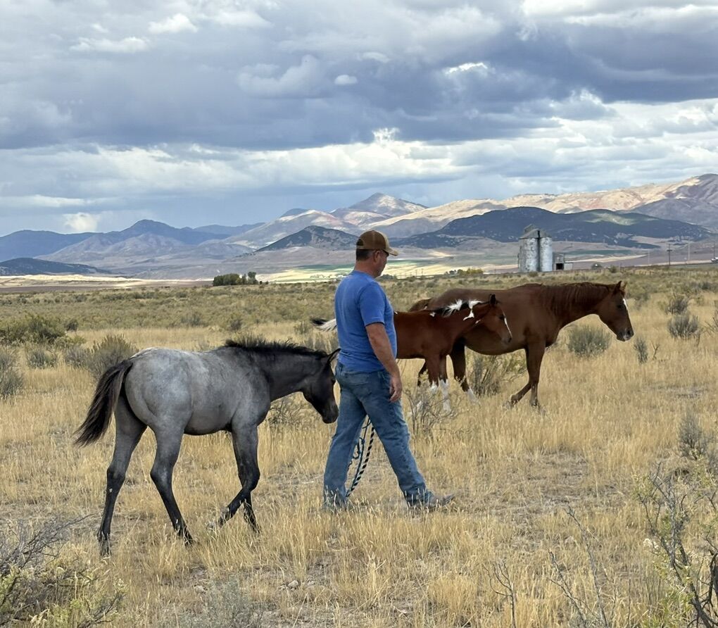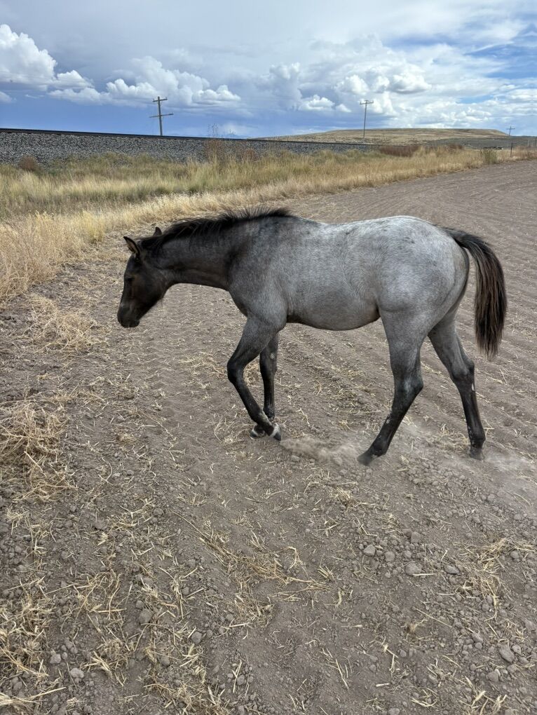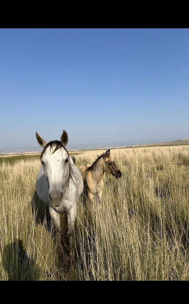 Lily is my go to ride - she is sweet, gentle and is a great trail ride, mountains and hunting. She can be out to pasture and be brought in after having a baby to be wonderful and saddle up to give anyone a ride. We have had Lily since she was 1 year old so we know her very well. Lily has have a few babies and each out of Harley have been Grulla or Grulla Roan. Last years foal is also pictured - Grulla roan- pretty dark so she looks like a blue roan yet as she gets older she will turn to Grulla Roan. Hands down best foal we have ever had. Wants to please, wants loves and scratches- easy to pick up feet, halter etc. Yes it was very hard to let her go.
