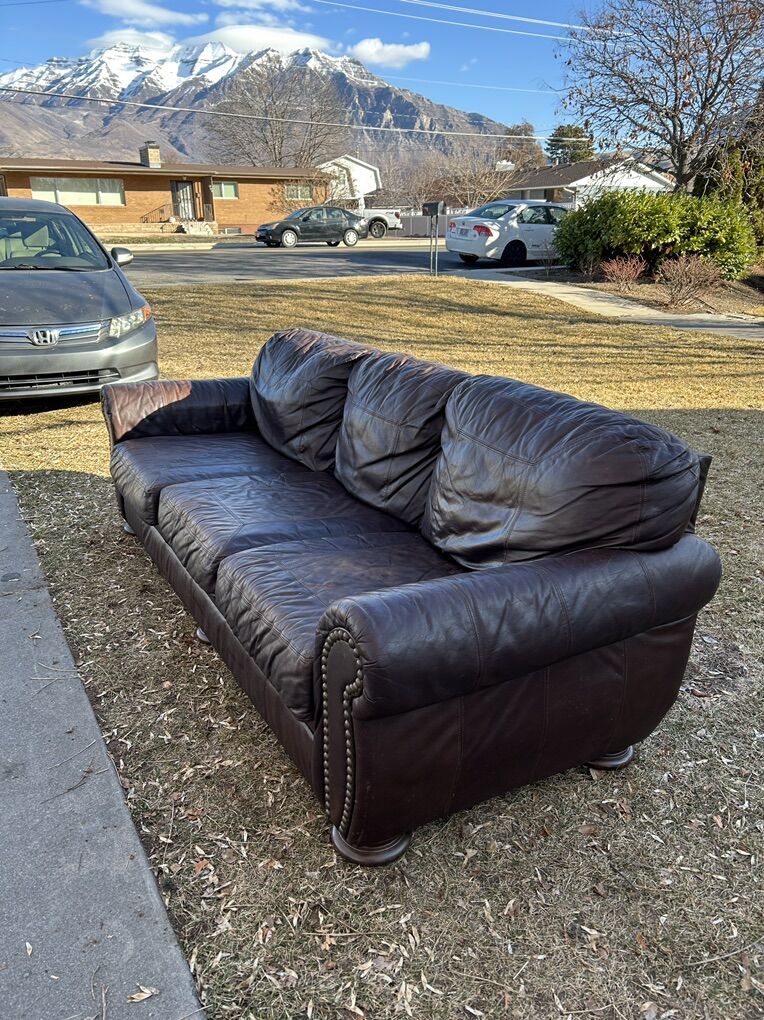 VenmoLarge high quality brown genuine leather couch