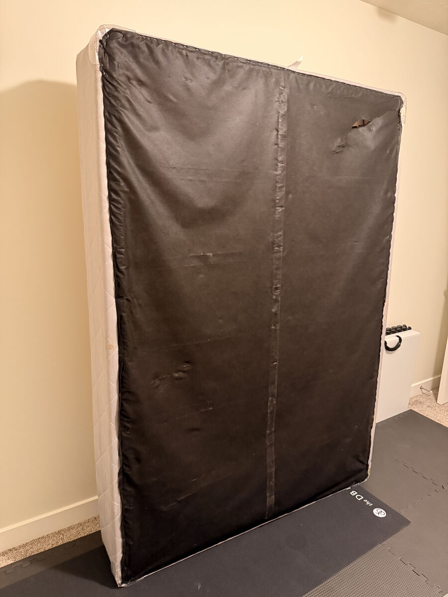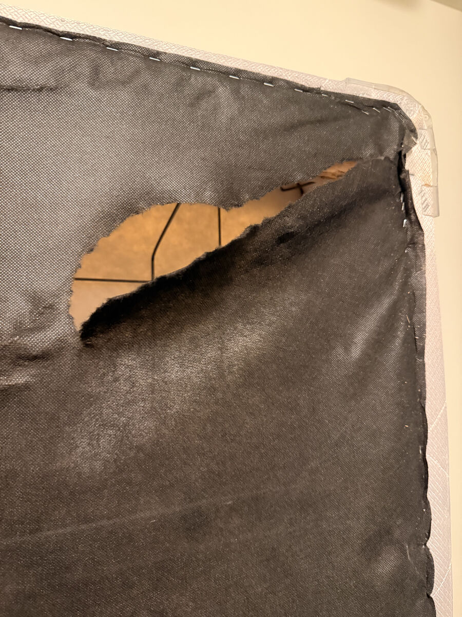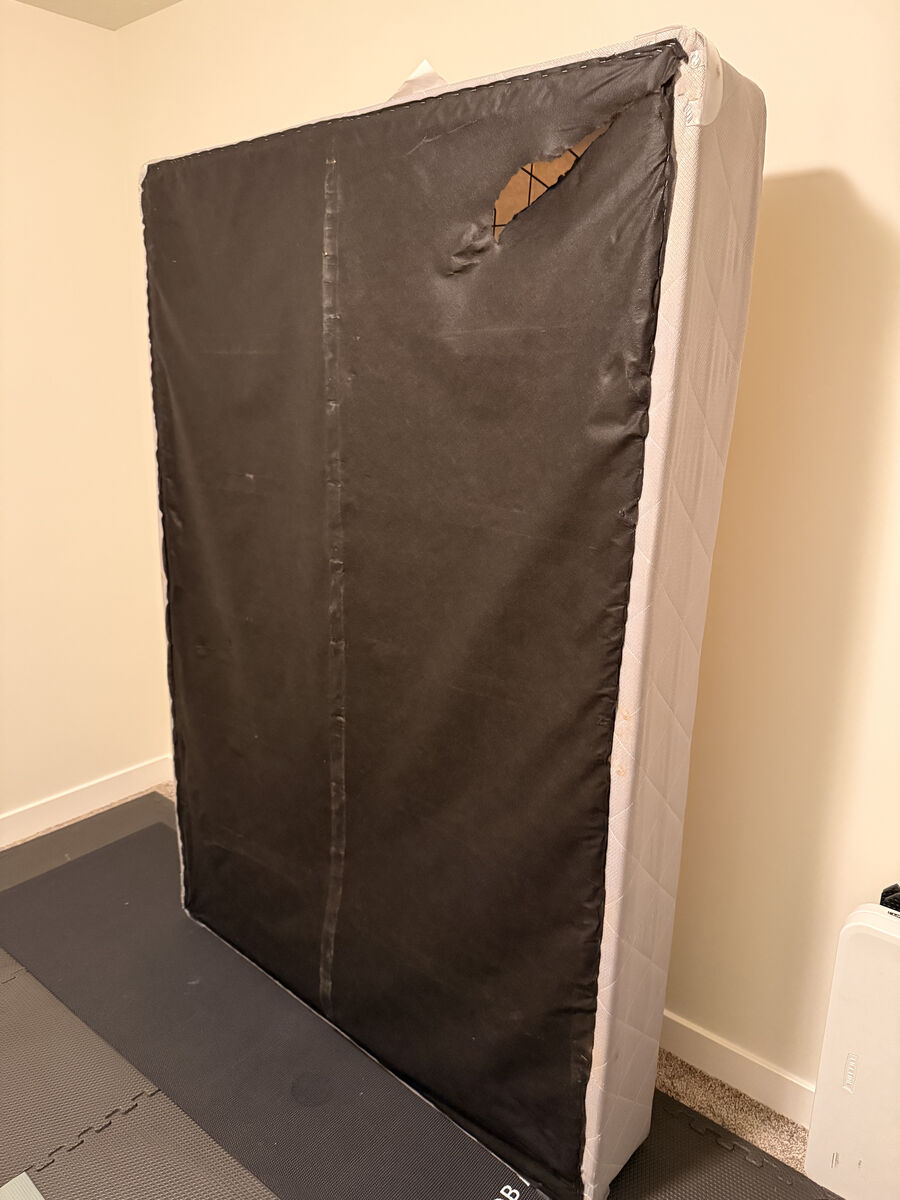 Full-size box spring in good quality condition. Small tear in the fabric on the bottom. I don't need it any more.
