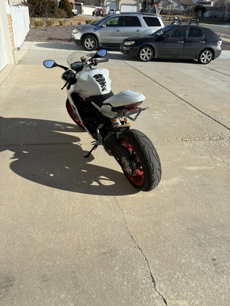 Selling my 2018 Ducati SupersportS. 5136 miles. I’ve had the bike for about 2 years. It’s never been laid down and always been maintained. Been taking it to Eurosport’s in Sandy for maintenance. The wheels on it now has less than 50 miles on them, got them installed and have t had much time to ride. Low miles, runs like new, never had an issue with it. The gas tank sensor is faulty but that’s all. Factory Matte white with red wheels, a limited color Ducati did for this bike!
