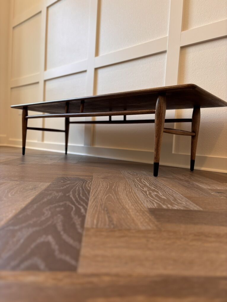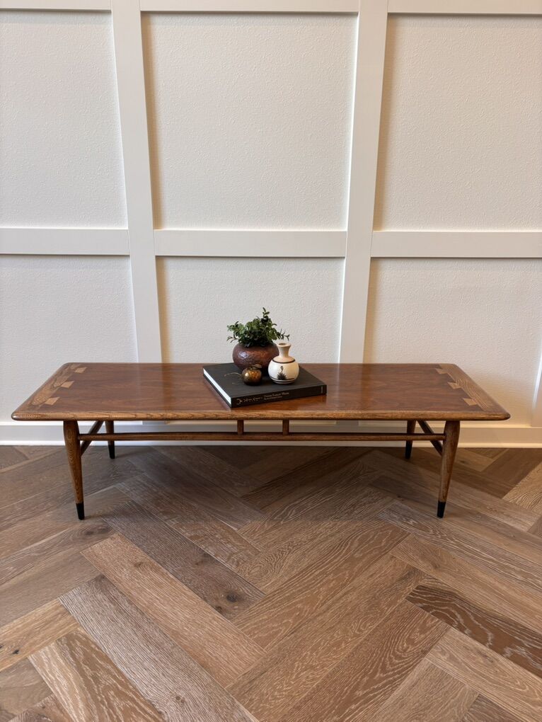 DESCRIPTION: The one everyone wants! Professionally refinished vintage Lane Acclaim coffee table Built in 1965. Gorgeous and classic combination of walnut and ash.
