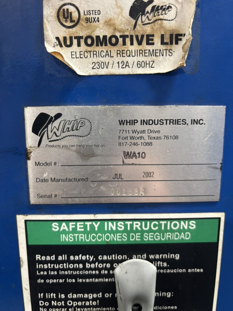 9000 lbs car lift 11’ 6” wide 12’ tall Cash only