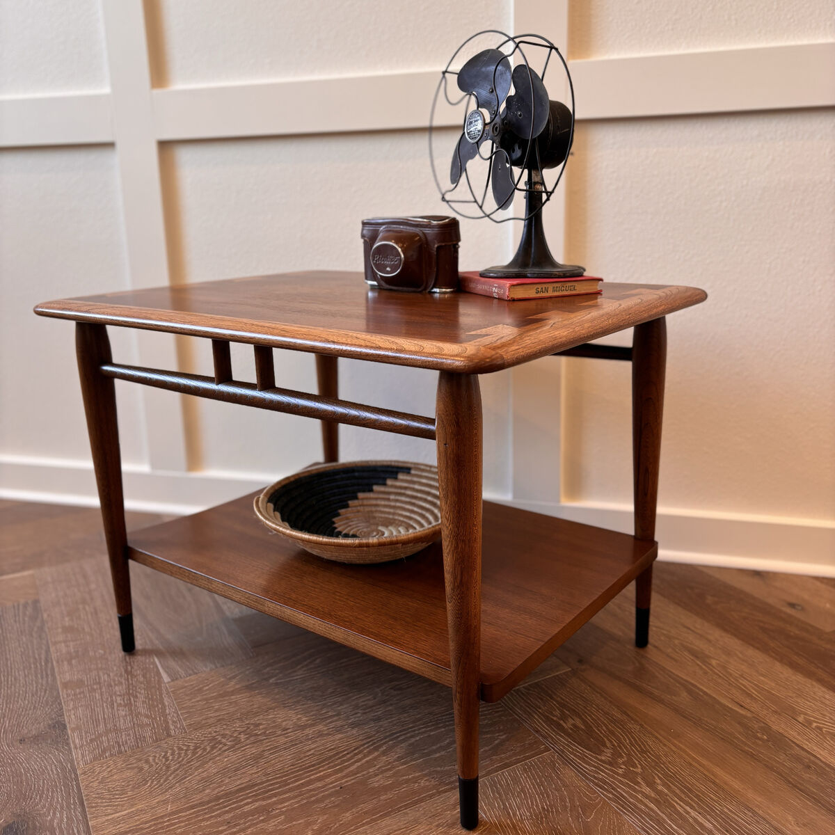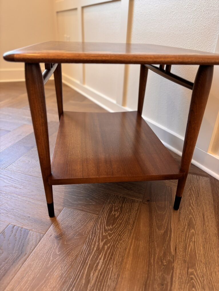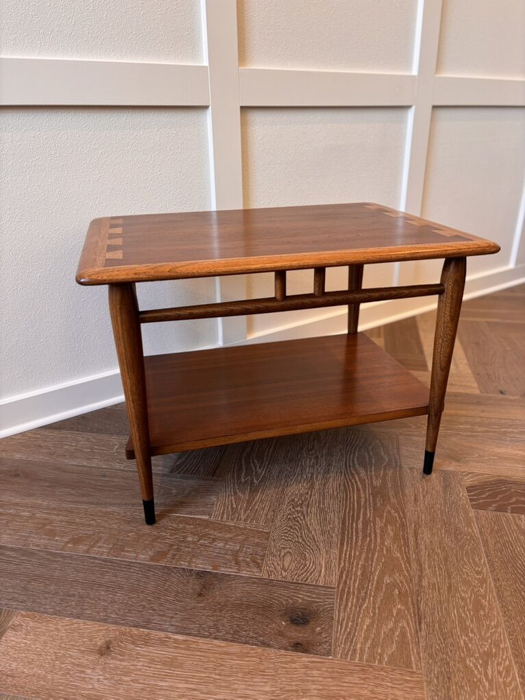 DESCRIPTION: Vintage classic Lane Acclaim end table. This has been professionally restored and is ready for its next 60 years! Stunning combination of walnut and ash. Built in 1961.