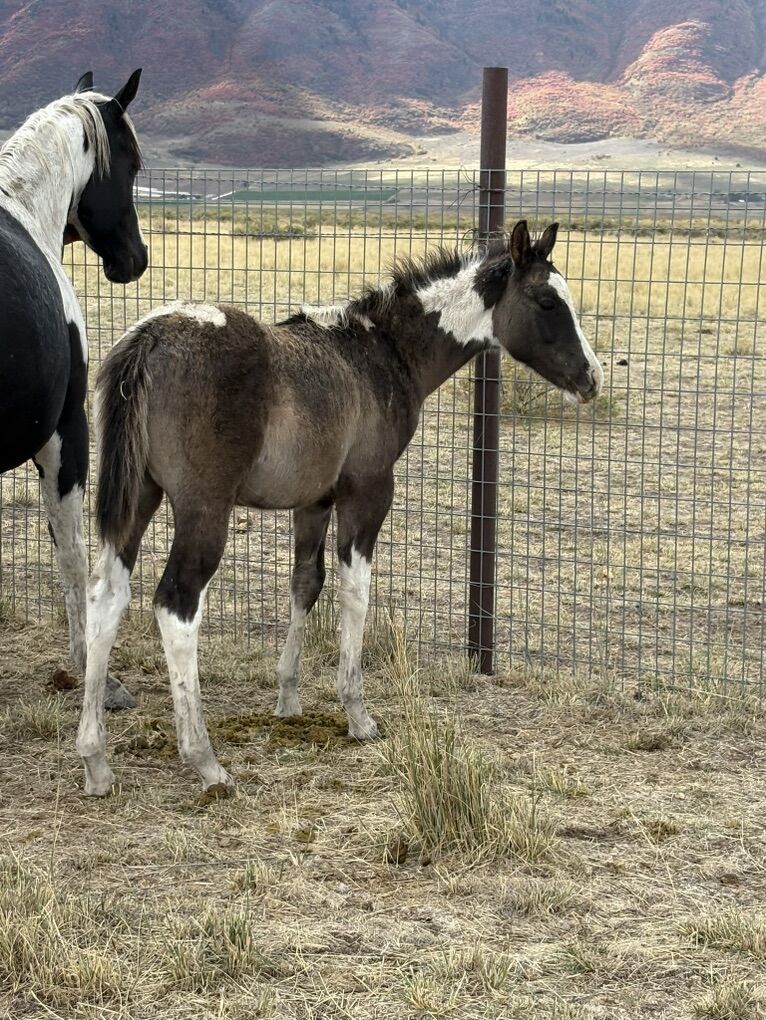 2025 foal shown in pictures NFS We have kept 3 of this Dam’s offspring- one is from our Some R Tru Texans (standing as stud at our ranch - black and white homozygous black and homozygous tobiano) and the last 2 grulla paint foals. They are incredible.