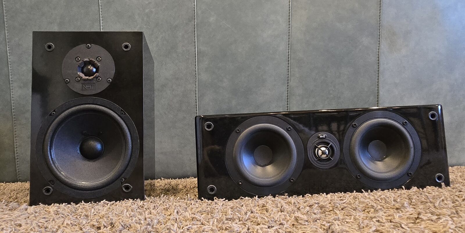 FOR SALE ARE 3 NHT AUDIOFILE SPEAKERS … 2 FRONT SPEAKERS AND 1 CENTER CHANNEL. THE PICTURE ONLY SHOWS 2 SPEAKERS, BUT THE SET HAS ACTUALLY 3.