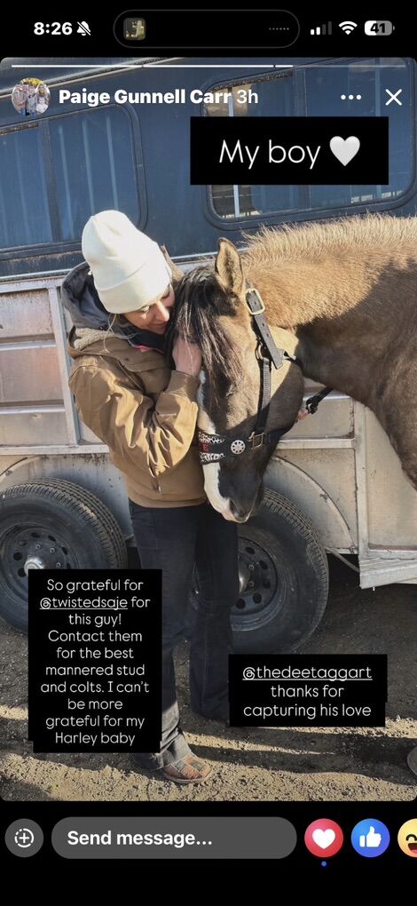 Follow Joyce Lynn Sprinkles Jensen on Facebook or twistedsaje on instagram for amazing mentions of what our stallions and mares produce.