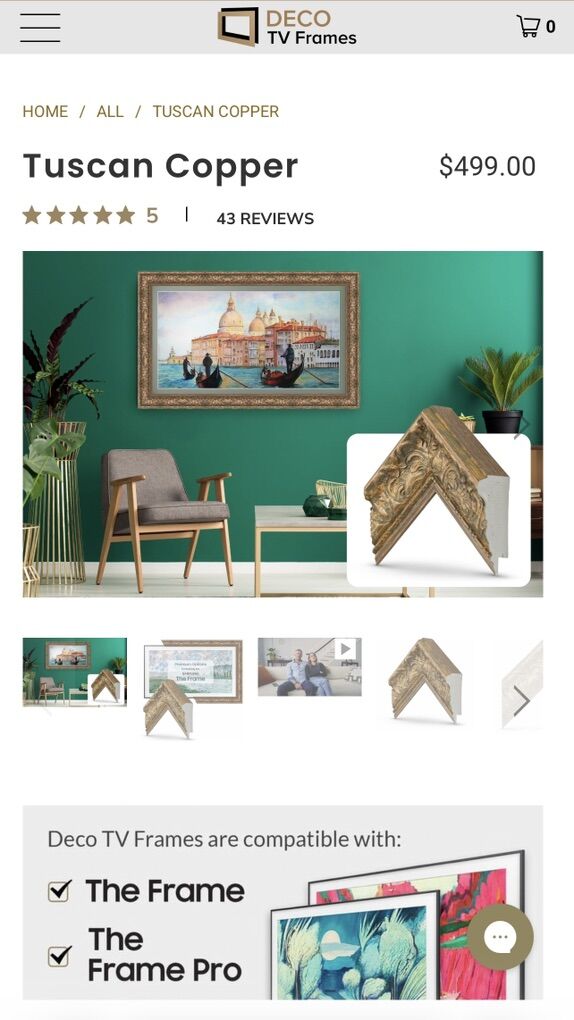 Deco custom frame alone retails for $499.00 More options can be seen on their website at - decotvframes.com