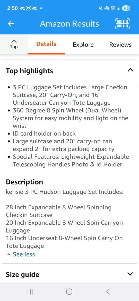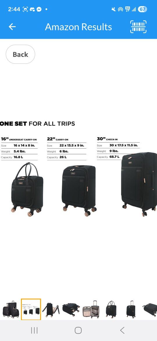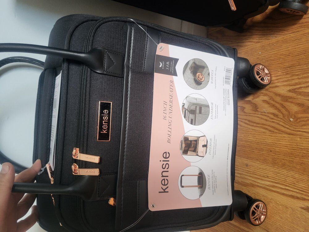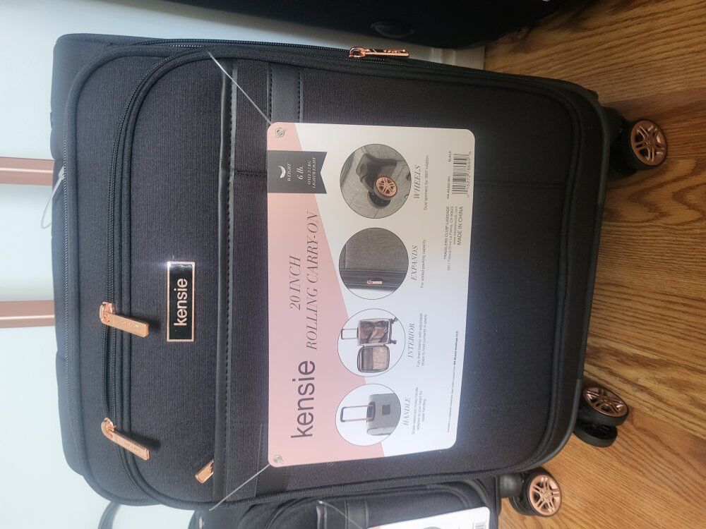 kensie Hudson Softside 3-Piece Spinner Luggage Set, Black with Rose Gold