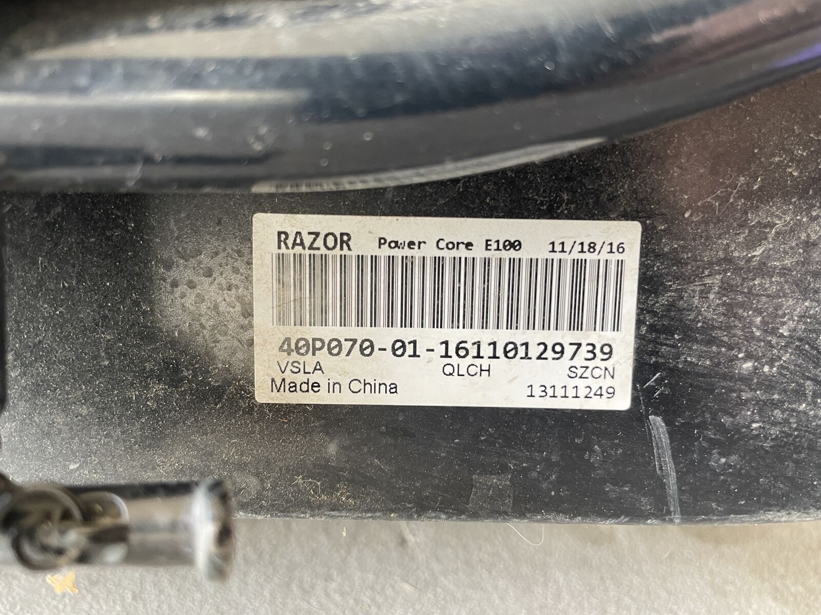 VenmoRAZOR E100 Power Core Electric Scooter for sale! Used in Good Condition. Original Owner, purchased new. Used only a handful times outdoors in driveway and sidewalks. Always stored in garage. Comes with charging cable. See photos for more details.