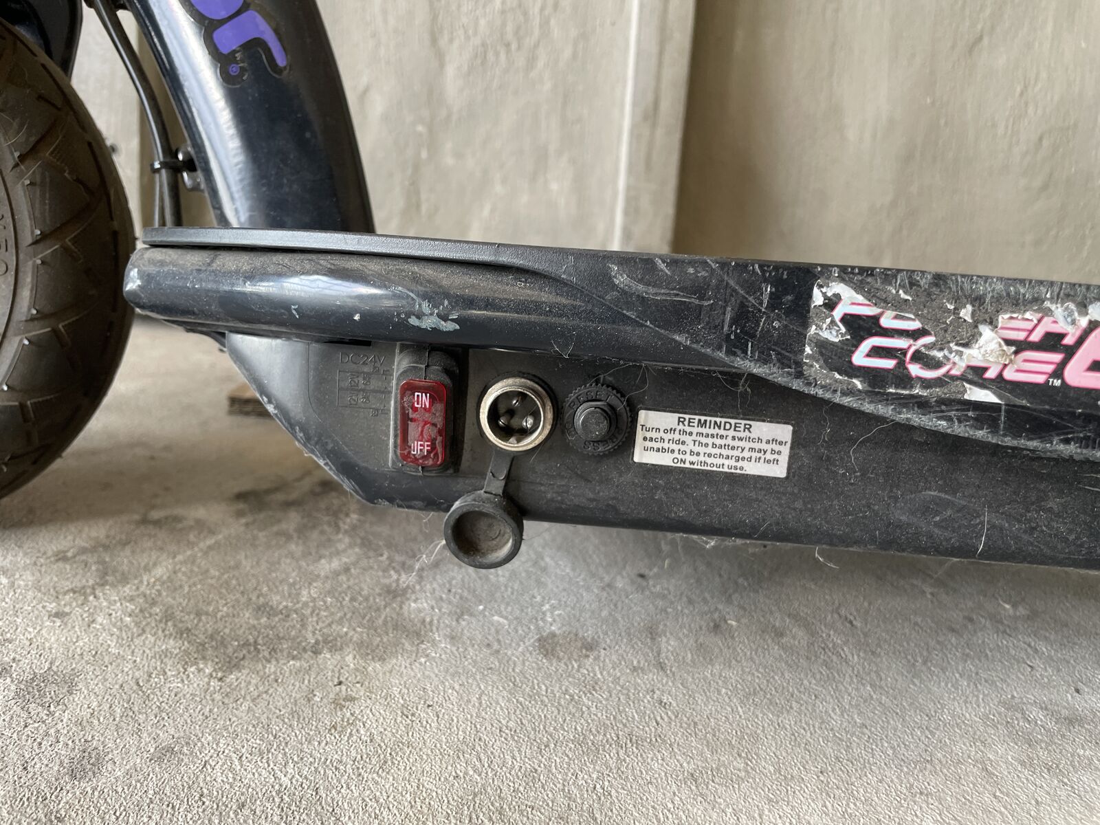 NOTE: This Electric Scooter is being sold as is and REQUIRES NEW BATTERY to function. No repairs, warranties, or guarantees are offered. Buyer is responsible for verifying compatibility of replacement parts and assumes all responsibility and risk for any repairs, installation, charging, or use after purchase. Seller is not liable for any issues arising from restoration or operation of the device.