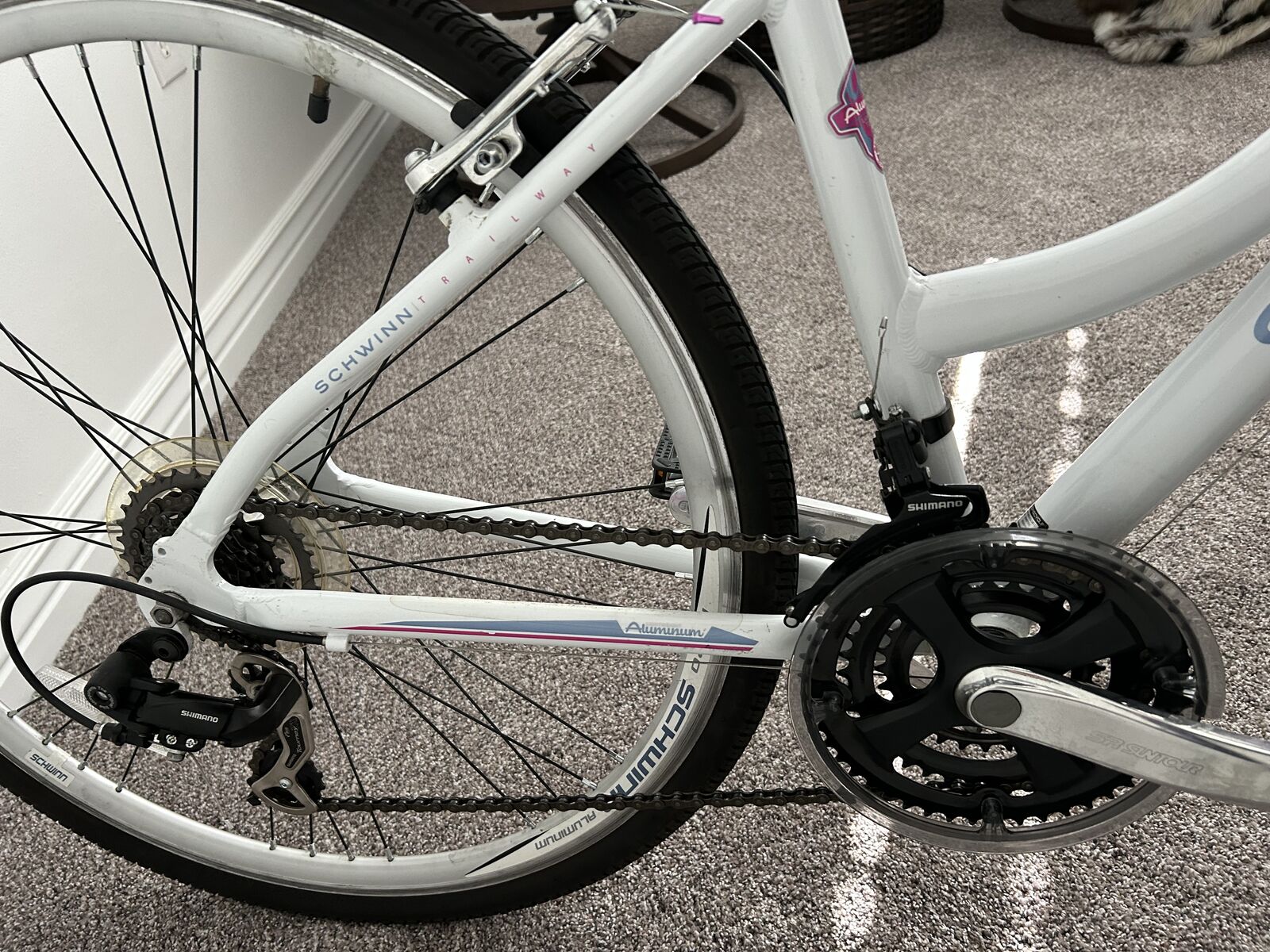 The Schwinn S5985TGC (often referred to as part of the Trailway series) is a women's 700c/28-inch hybrid bike designed for versatile riding, including commuting, fitness, and casual trail use.