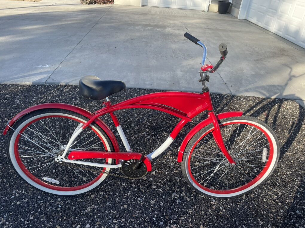VenmoIt’s in great condition, the front tire does not hold air and the stickers seem to have been removed however it is a Budweiser branded bike as seen in the third photo, needs new pedals but other than that, it works great PRICE IS NEGOTIABLE