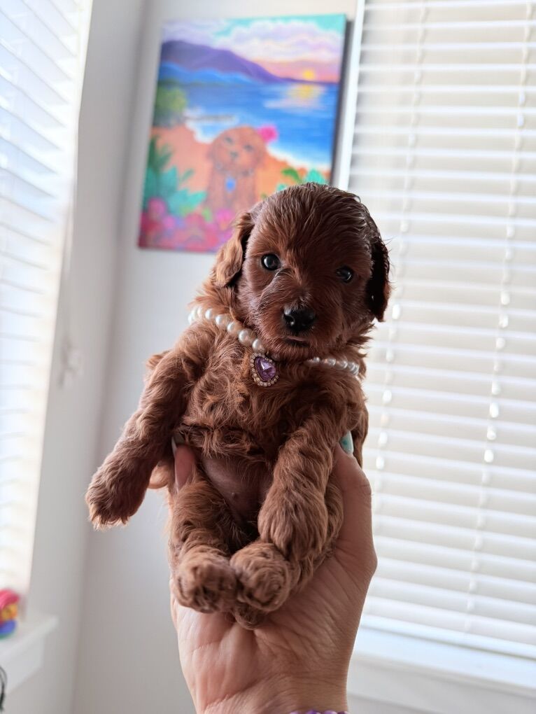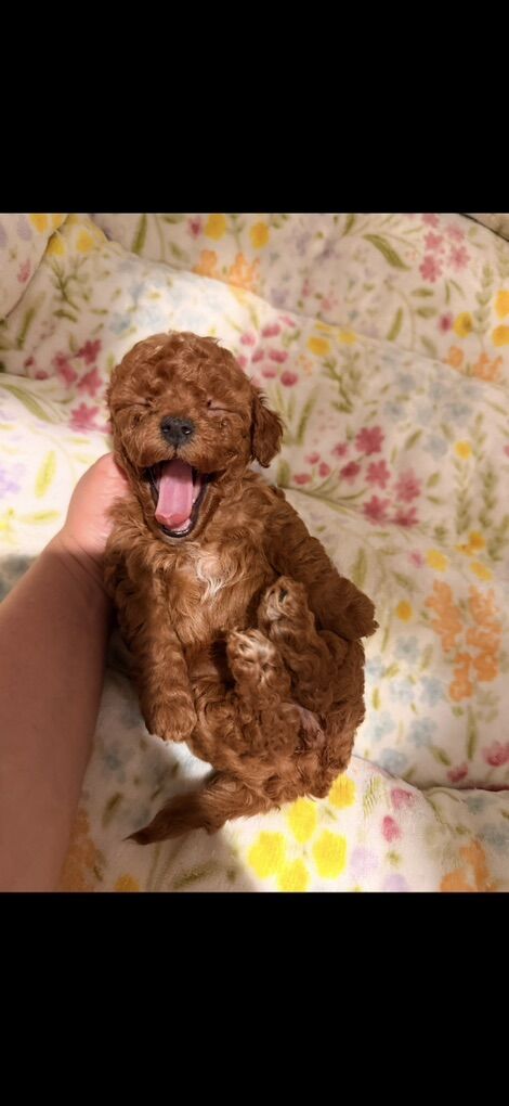 About Chief Chief is the perfect dark-red teacup Poodle stud. He is tiny, confident, and absolutely stunning. People often say the pictures don't do him justice because he is so small but has long beautiful legs that is so desired. Everywhere he goes, he turns heads and gets endless compliments. At just 4.8 pounds, Chief is one of our smallest and most striking AKC-registered teacup poodles. He has a short snout, excellent conformation, and impeccable health testing. Chief has a charm that goes far beyond his looks. He’s affectionate, playful, and incredibly obedient. He loves to cuddle, enjoys gentle playtime, and thrives on human connection. His sweet personality, paired with his gorgeous coat and petite size, are traits that shine through in every one of his offspring. At Wasatch Pup, we believe in more than producing adorable puppies. we’re committed to ethical, responsible breeding that prioritizes health, temperament, and lifelong homes. Every dog we breed carries forward our mission: to bring healthy, happy pups into loving families.
