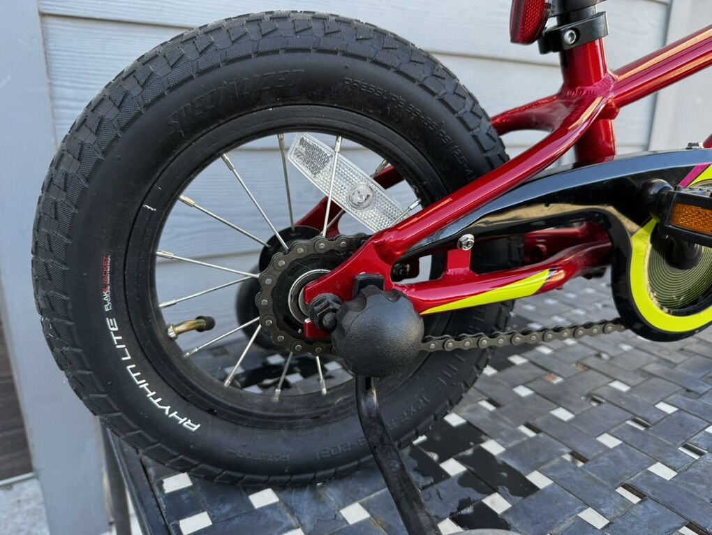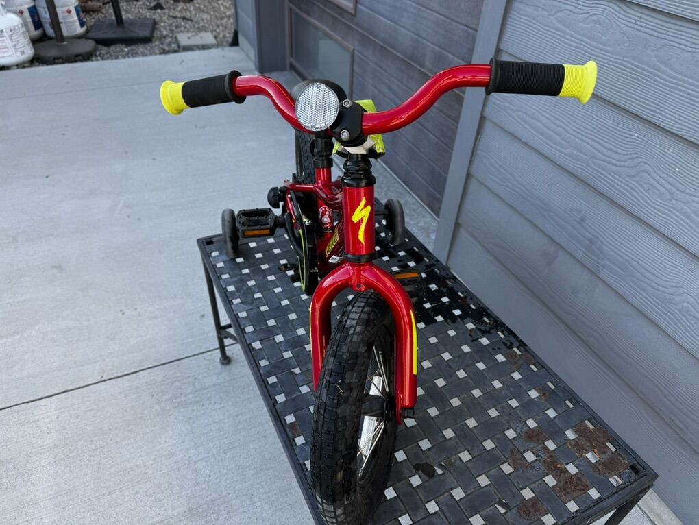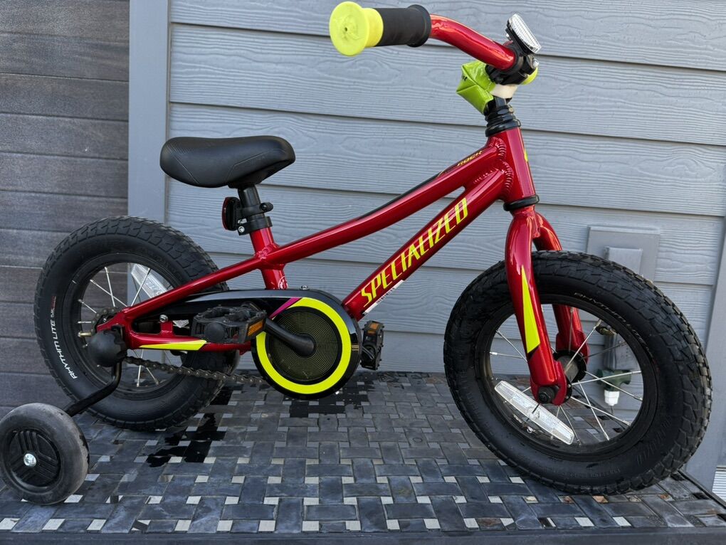 Hardly used, training wheels can be removed with hand turn knob, coaster brakes, great tires, standard valve. Handlebars and seat adjustable.