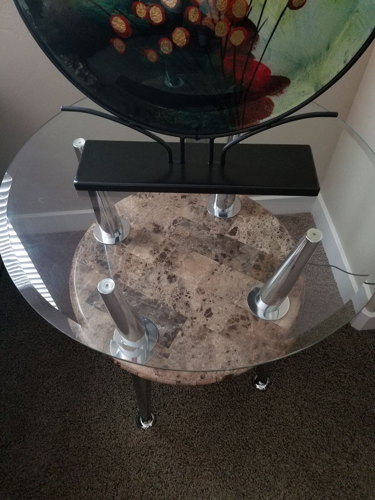 Ashley furniture granite style coffee or sofa table and end table set. Like new and great condition. Selling as a set and will not separate. Retail new was $389 plus tax. Asking only $110 for the set or best offer.