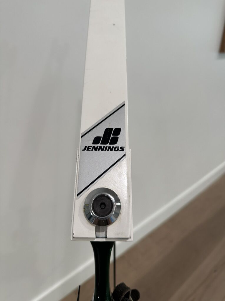 Jennings Starlite 2 right handed compound bow. In ok shape. Some scratches. 60 pound pull.