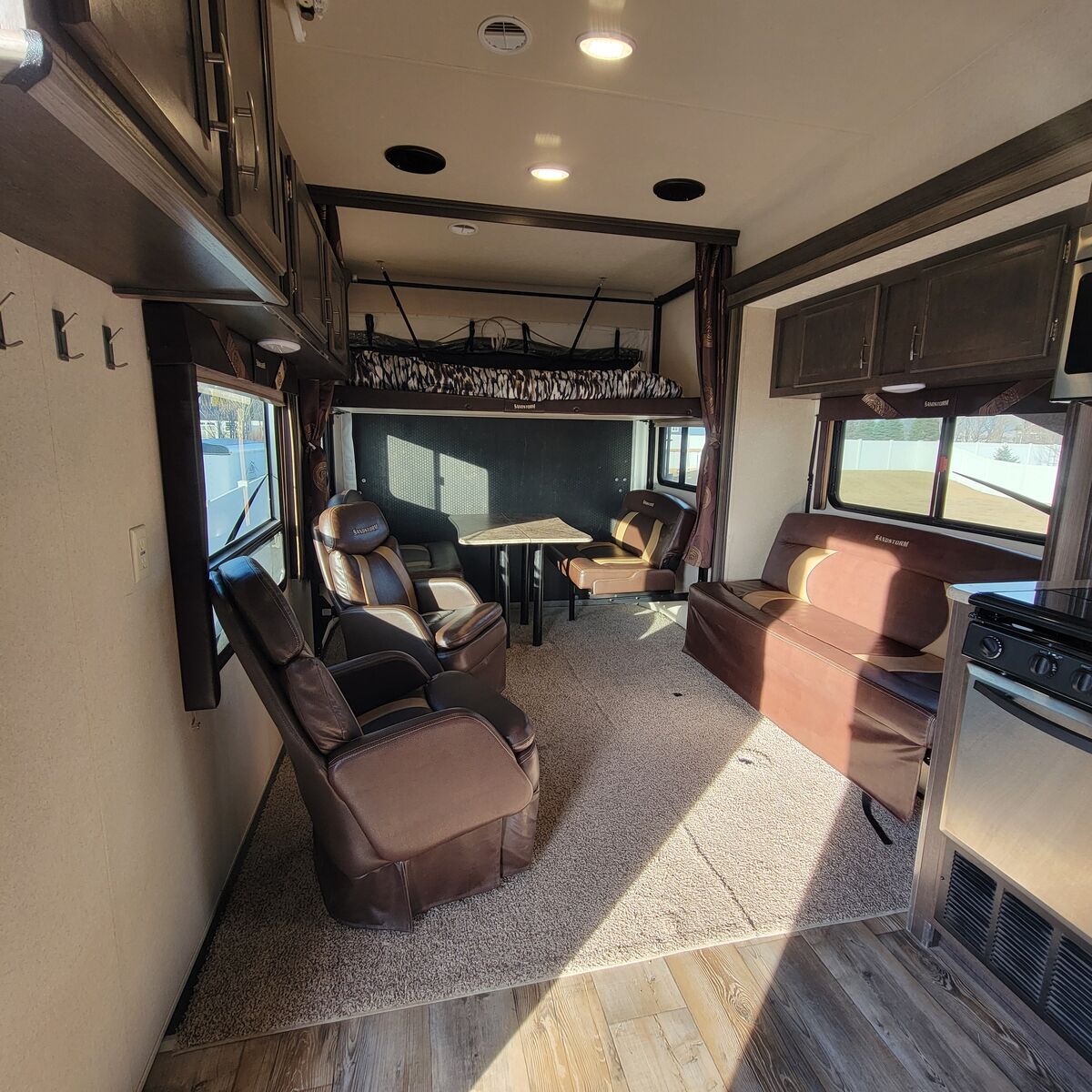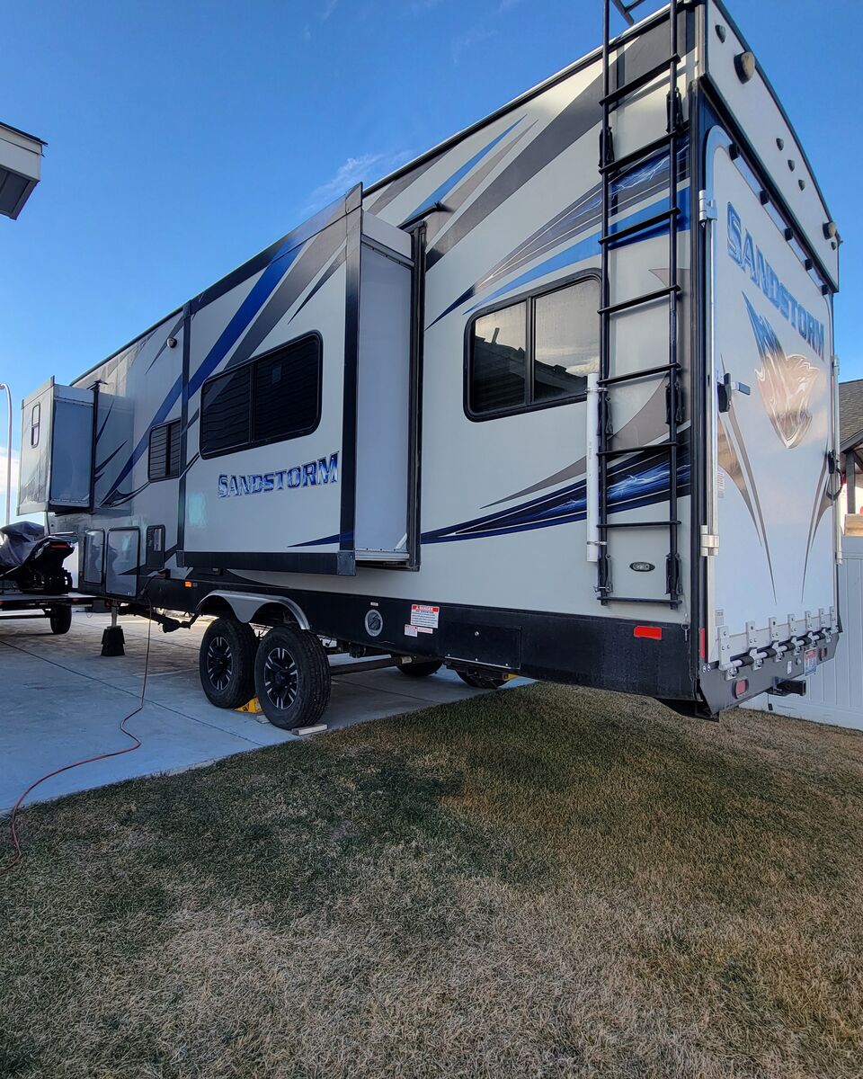 2018 Forest River Sandstorm F286SLR-G series.Very clean, versatile toy hauler with all the extras you would ever need! It has a 16 foot garage, a 4inch lift works well with taller pickups. It will fit a 4-seater Canam or Razr. Fully equipped with on board generator with 198 hours, solar panels, 35 gallon fuel cell, 100+ gallon fresh water tank, 2 slide-outs, gas/electric fridge, an A/C unit, 2 captains chairs, 3 tables, queen size master bed, heavy duty lippert stairs, electric awning, TV with built in dvd player/ indoor-outdoor stereo, 2 inch hitch receiver for towing extra trailer, and tires only have 1 season on them.