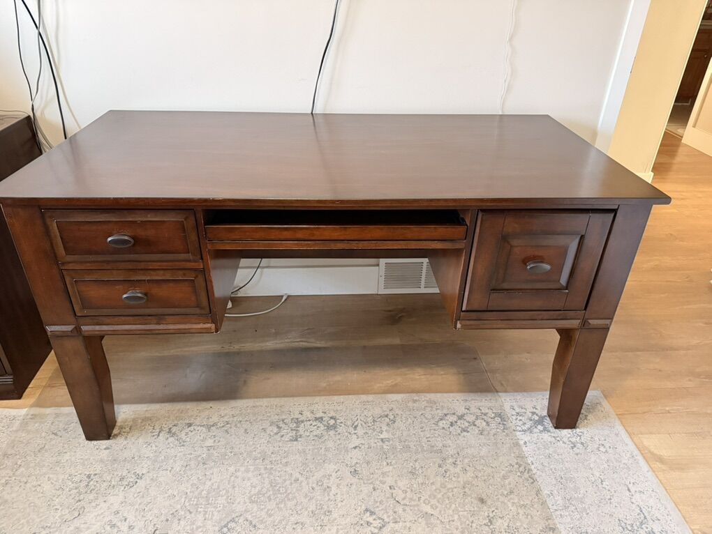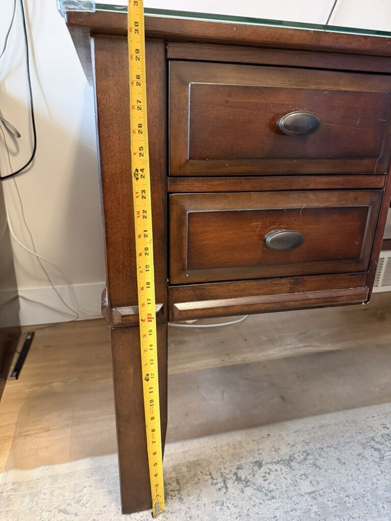 ApplePayCherry wood desk in great condition with glass top. 60” L x 30” W x 30.5” H