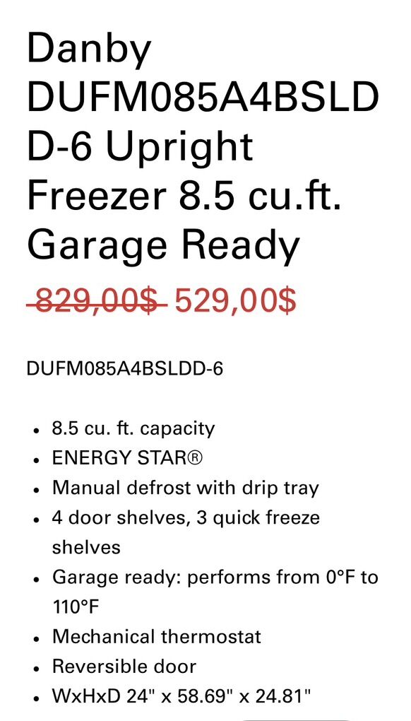 Danby DUFM085A4BSLD D-6 Upright Freezer 8.5 cu.ft. Garage Ready DUFM085A4BSLDD-6\